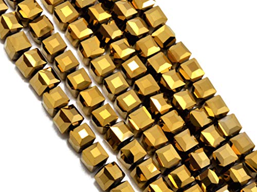 Golden Metallic Cube Shaped Crystal Beads (8 mm * 8 mm) 1 String for Jewellery Making Beading Arts and Crafts Purpose