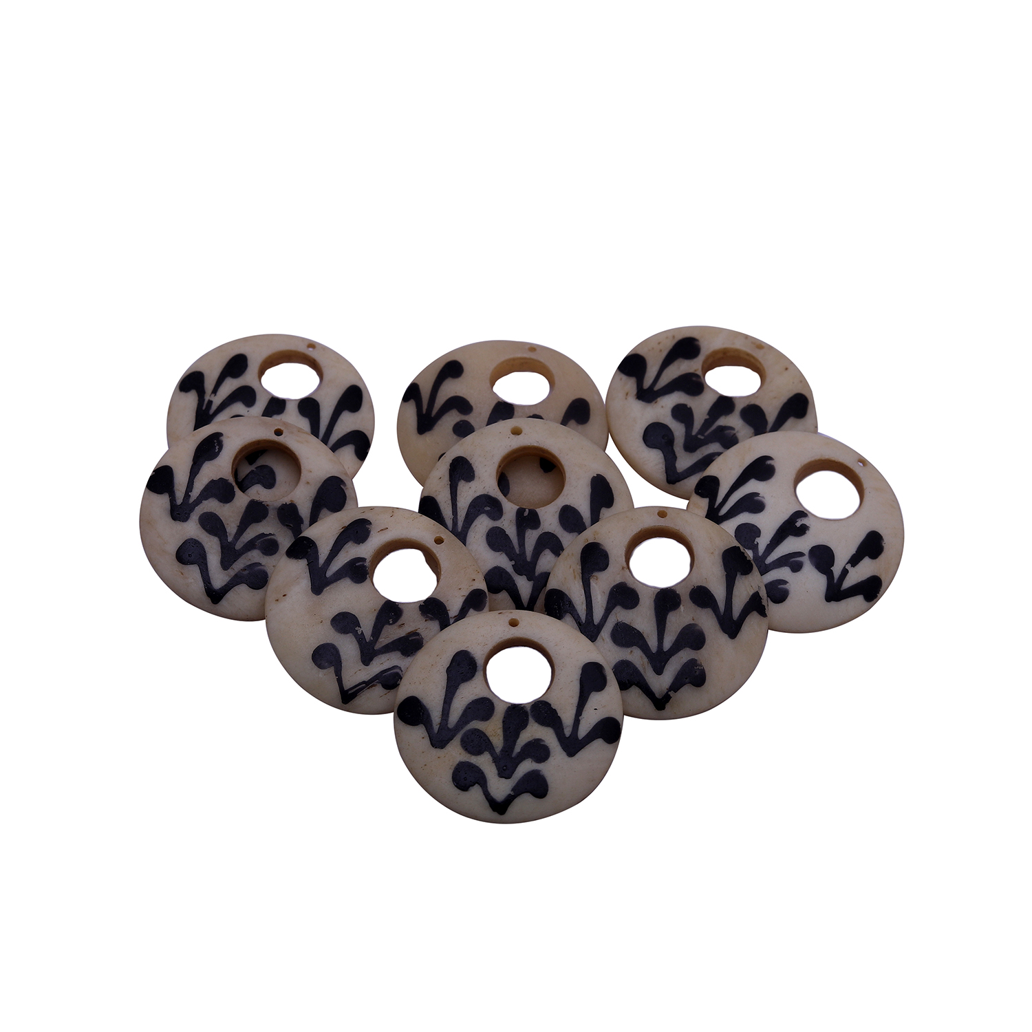 Beige Horn handmade beads hand-painted with black | Bone Carved Beads | DIY Crafts