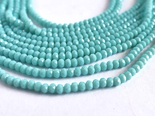 Sea Blue Opaque Tyre/Rondelle Faceted Crystal Beads (6 mm) (1 String) for Jewellery Making Beading Embroidery Art and Craft