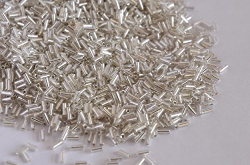Silverline White/Crystal Pipe/Bugle Beads/Glass Seed Beads (9.0 mm) (100 Grams) Standard Quality for Jewellery Making Beading Arts and Crafts and Embroidery.