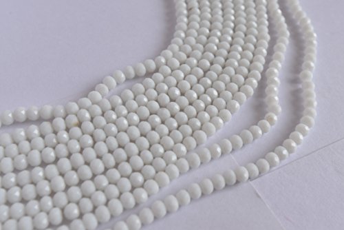 White Opaque Tyre/Rondelle Shaped Crystal Beads (10 mm) 1 Line for Jewellery Making Beading Arts and Crafts and Embroidery.