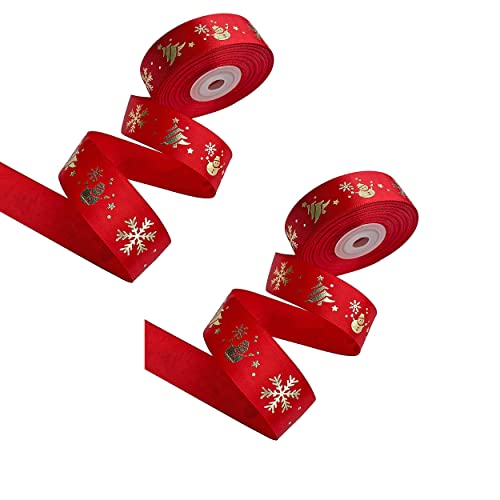 Forty Wings 18 Meter Red Christmas Printed Satin Ribbon 1 Inch for Gift Wrapping, Tree, Garlands, Wreath, Decoration, and Craft