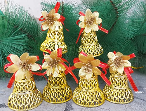 Christmas Vibes Big 6 Pcs Christmas Golden Decorative Bells for Christmas Ornaments Xmas Tree Hangings Ornaments for Christmas Decoration Items for Home Decoration