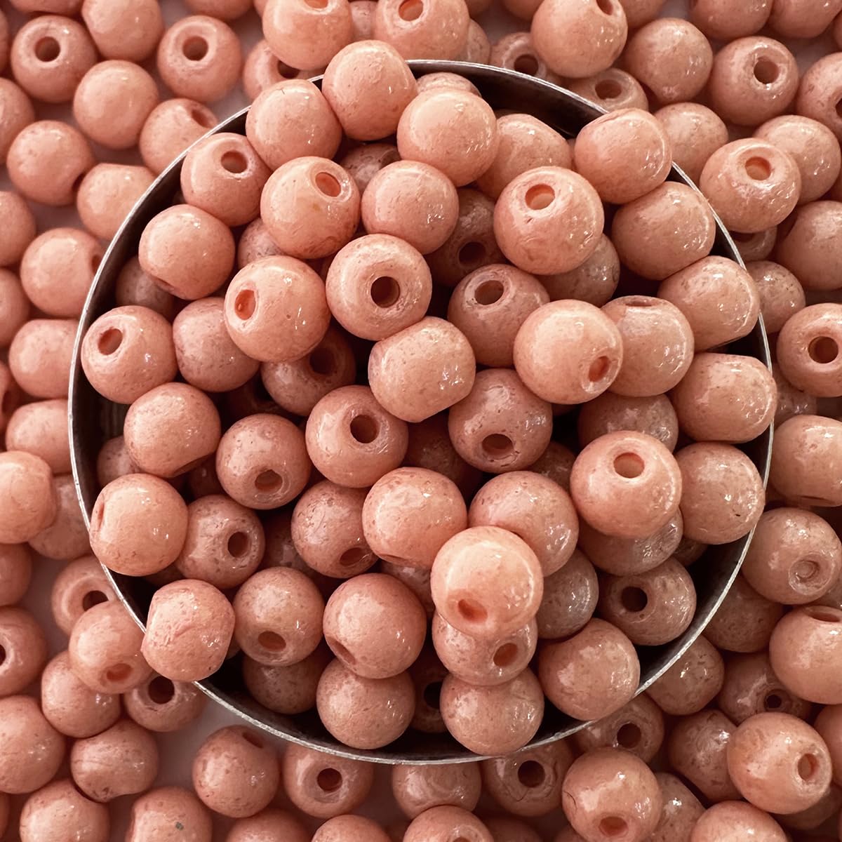 Indulge in creativity and sophistication with these exquisite Round Ceramic Glass Beads (Moti)! Whether you're crafting jewelry bracelets embroidery work malas torans or other decorative pieces these beads are the perfect choice for adding a touch of elegance and charm to your creations.Each pack contains 100 grams of beads in a captivating light peach color ranging from 3 to 5 millimeters in size. The soft and subtle hue of light peach adds a delicate and feminine touch to your designs making these beads a versatile option for a variety of crafting endeavors.Crafted from high-quality ceramic glass material these beads feature a smooth surface and a lustrous finish enhancing the overall aesthetic of your projects with a touch of sophistication. Whether you're a novice or an experienced crafter these beads are easy to work with and inspire endless creativity.String them onto wire or thread to design eye-catching jewelry pieces sew them onto fabric for intricate embroidery work or incorporate them into mala and toran designs to infuse traditional charm into your crafts. The possibilities are endless with these versatile beads!Durable and long-lasting these Round Ceramic Glass Beads (Moti) are designed to withstand the test of time ensuring that your creations remain beautiful for years to come.Features:Pack of 100 grams of round ceramic glass beads (Moti)Color: Light PeachSize: 3 to 5 millimetersVersatile and ideal for jewelry making bracelet crafting embroidery work mala making toran making and moreSmooth surface and lustrous finish for an elegant lookEasy to work with for crafters of all skill levels