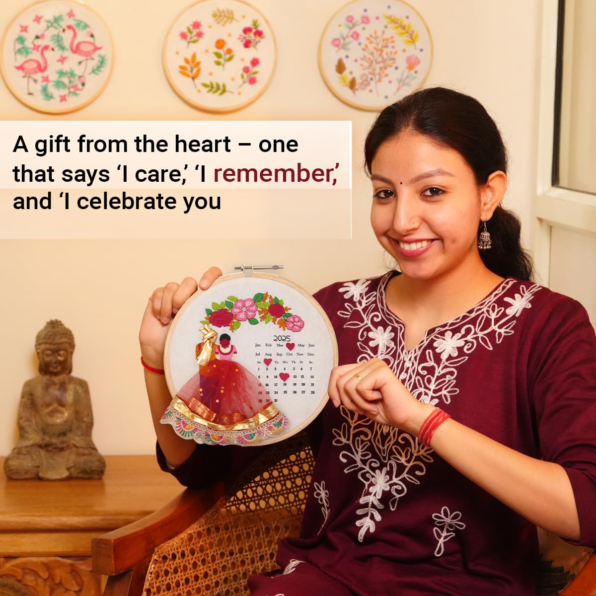 PicknMAKE DIY Personalized Wedding Anniversary Embroidery Kit for Beginners Calendar Hoop Art with 3D Bride & Groom Design Floral Motifs and Display Stand Perfect for Weddings & Anniversaries