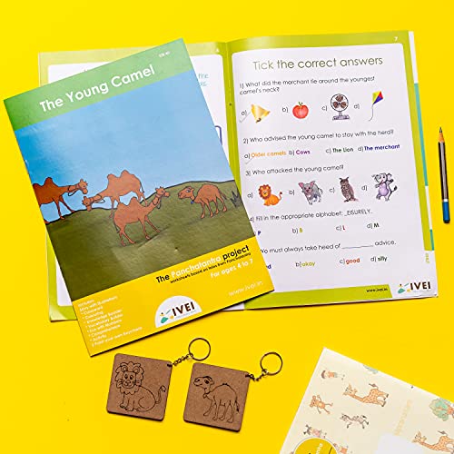 Story with illustrations 7 worksheets (Crossword Knowledge booster Vocabulary builder Fun with numbers Comprehension Colouring Activity) & 2 paint your own keychains