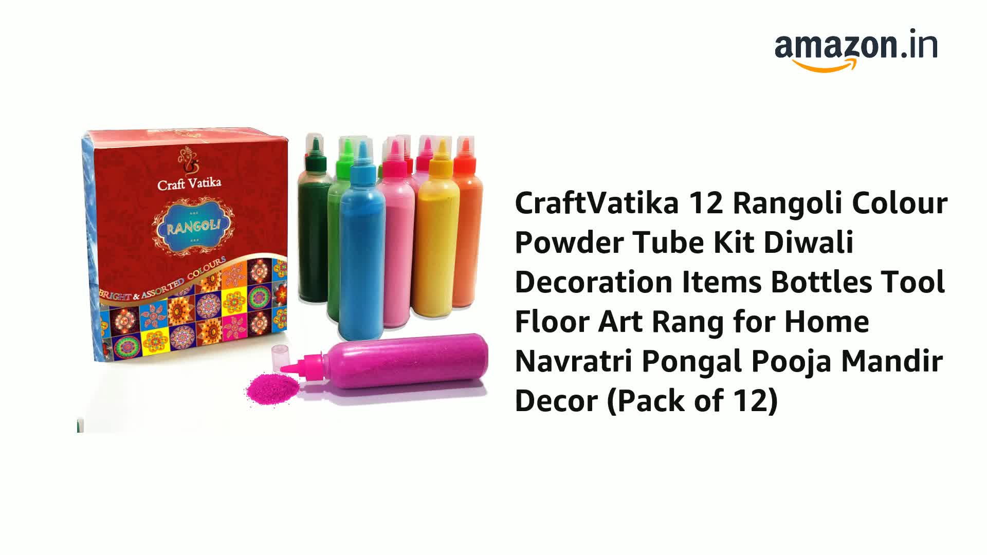 Rangaoli Package Contain: Set of 12 Multicolour Rangoli color bottles with nozzle .It is usually made during diwali (Deepawali) wedding onam pongal and other indian festivals. . Colour is made of sawdust. These colors are eco friendly.rangoli is a native of indian culture and is used in every festive occasion to decorate one's house. These colors spread positive vibrations within the environment and make to lively and also signify a warm welcome for visitors. Many traditionalists also believe that drawing of rangolis on the floor near the main doorway of the house warded off evil spirits. HOW TO USE: Please cut Front nozzle with knife. If you need larger hole please cut around 4 MM front part of the nozzle