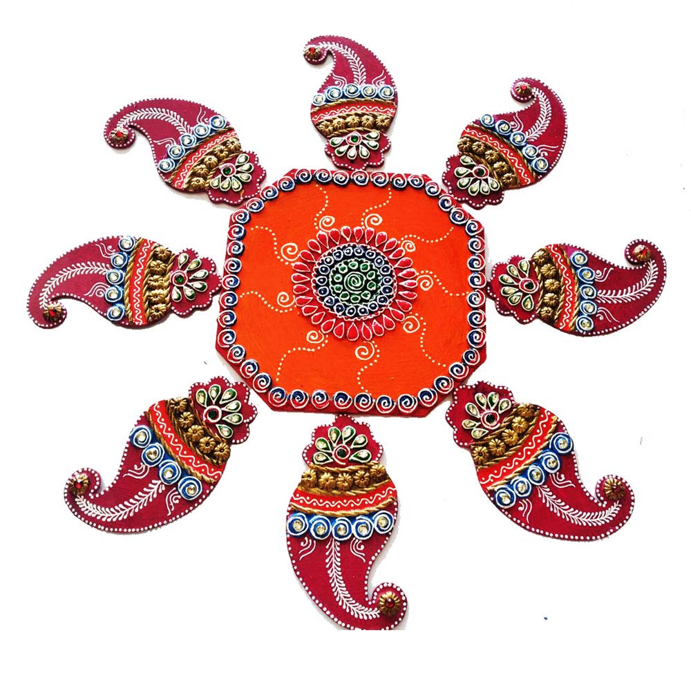 BIKANER GANGAUR IDOL Decorative Handmade Festival Red Color Rangoli for Diwali. This Rangoli size 15x15 inch round circle. This Wooden rangoli reusable is easy to use. just add subpart.