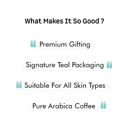 PREMIUM COFFEE-CHOCO GIFTING BOLD TEAL PACKAGING: India's most loved Coffee Body Scrub ultra-moisturizing Choco Body Butter and a Wooden Scoop with a zesty aroma packed in a bold teal packaging has all the makings of a perfect gift on a date. Isn't it?