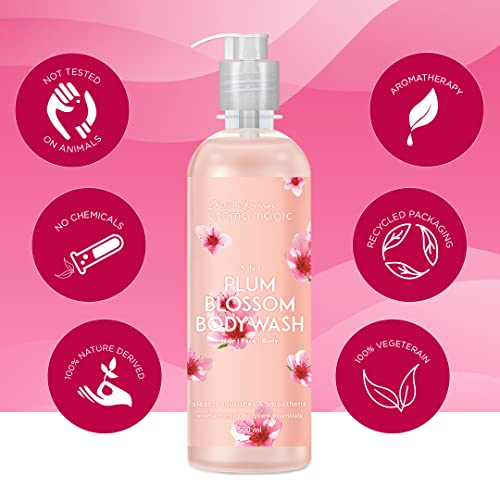 Aroma Magic 3 in 1 Plum Blossom Body Wash | Cleanses & nourishes skin, mattifies & revives dullness with Apple cider vinegar, grapefruit & clary sage essential oils, vitamin E – 220ml
