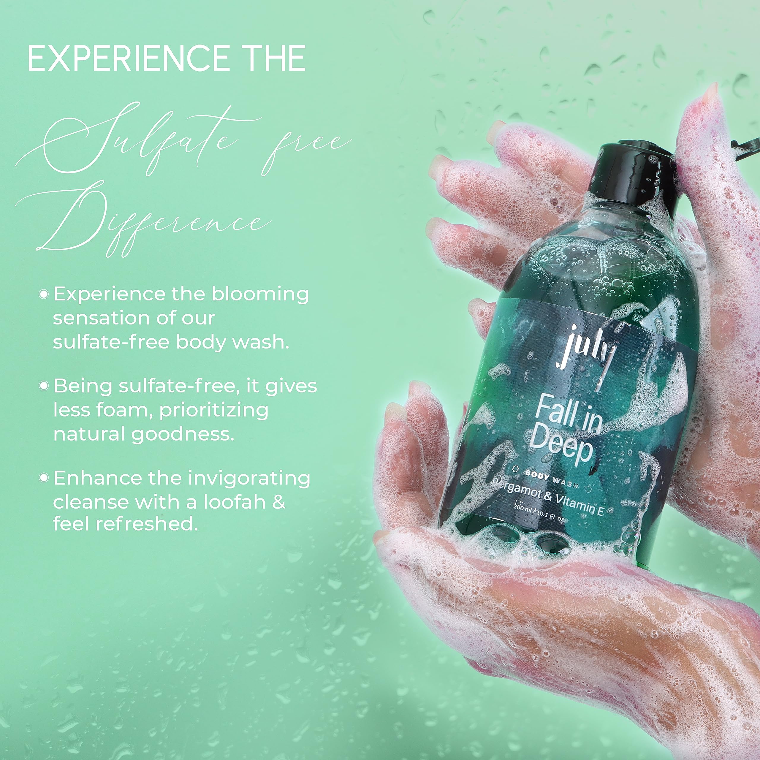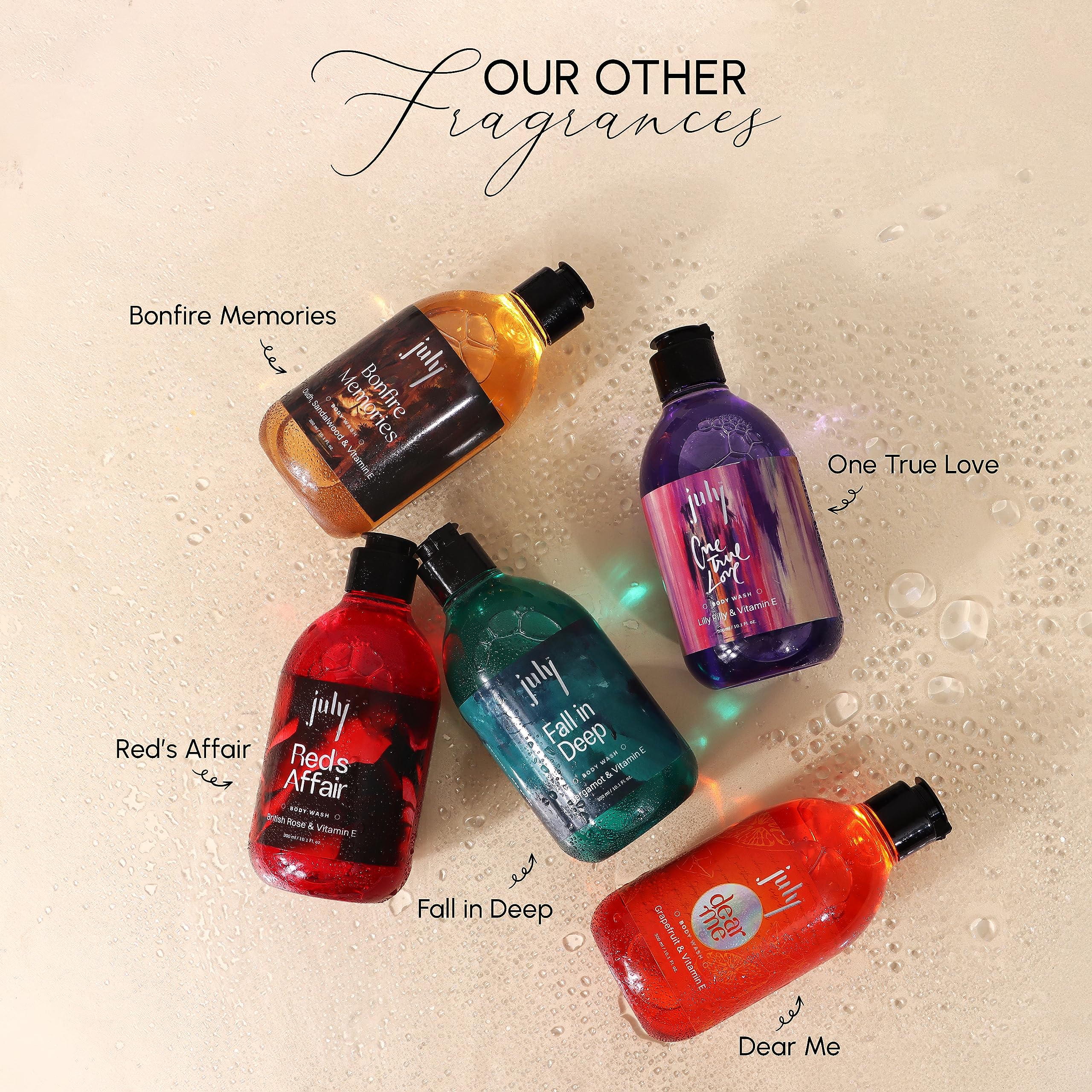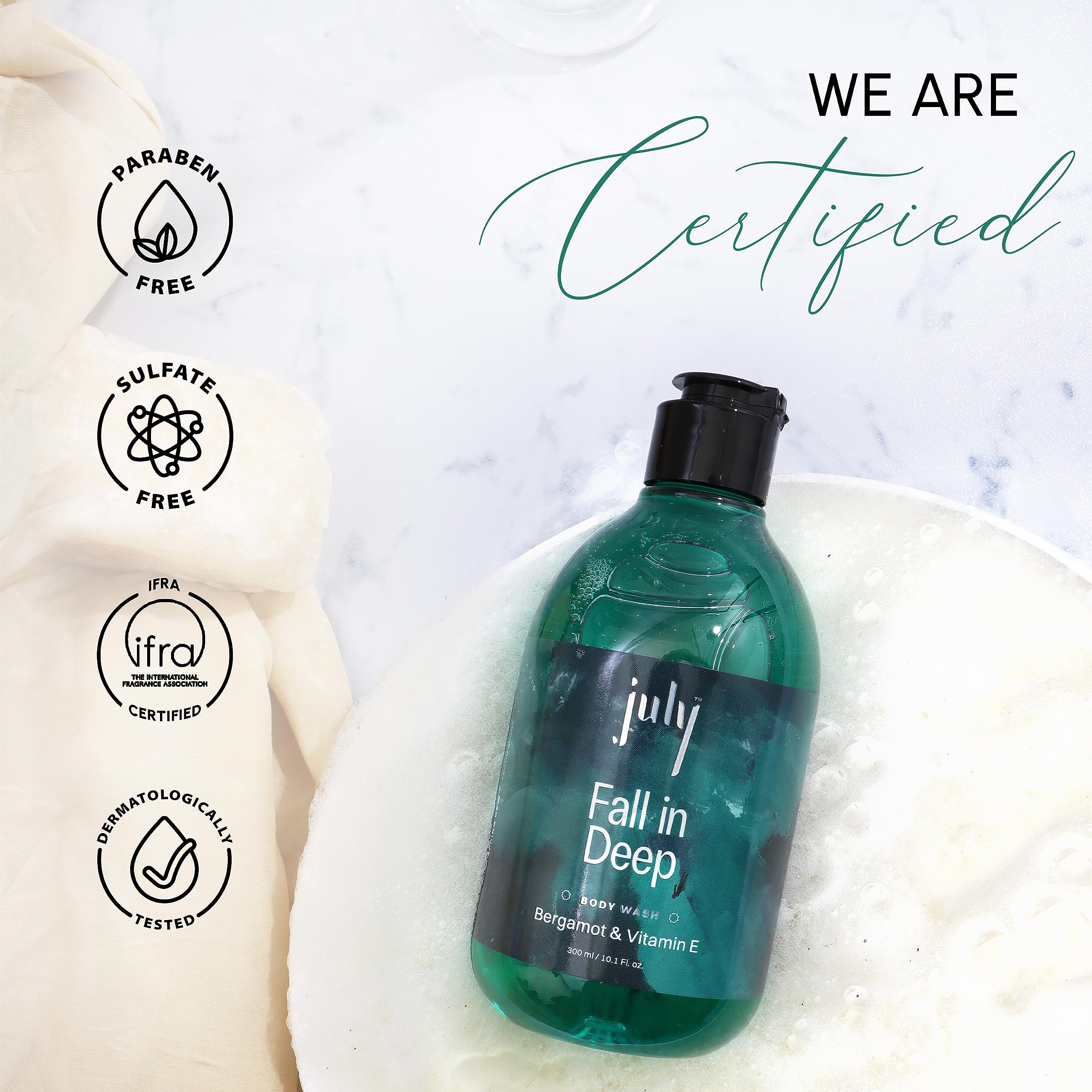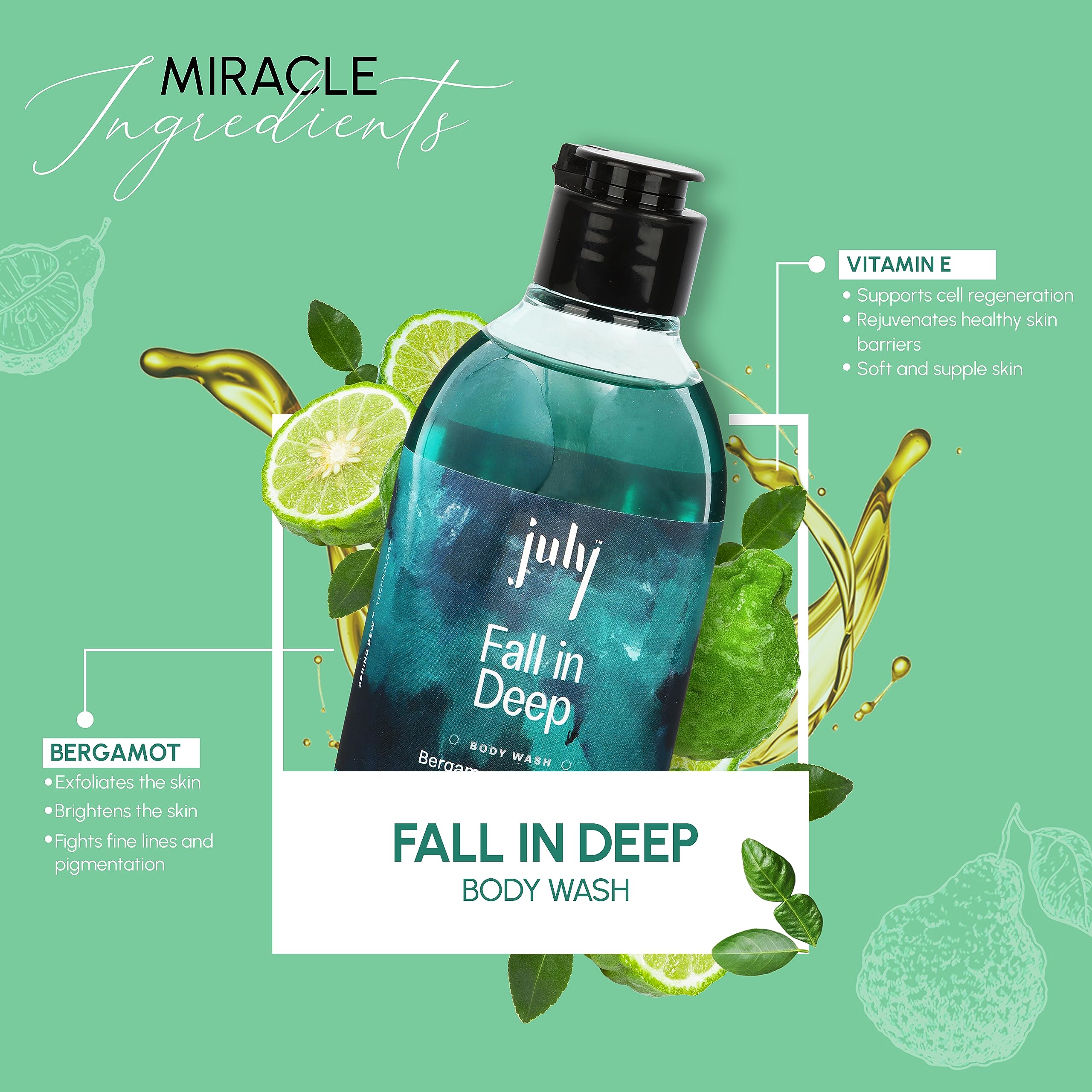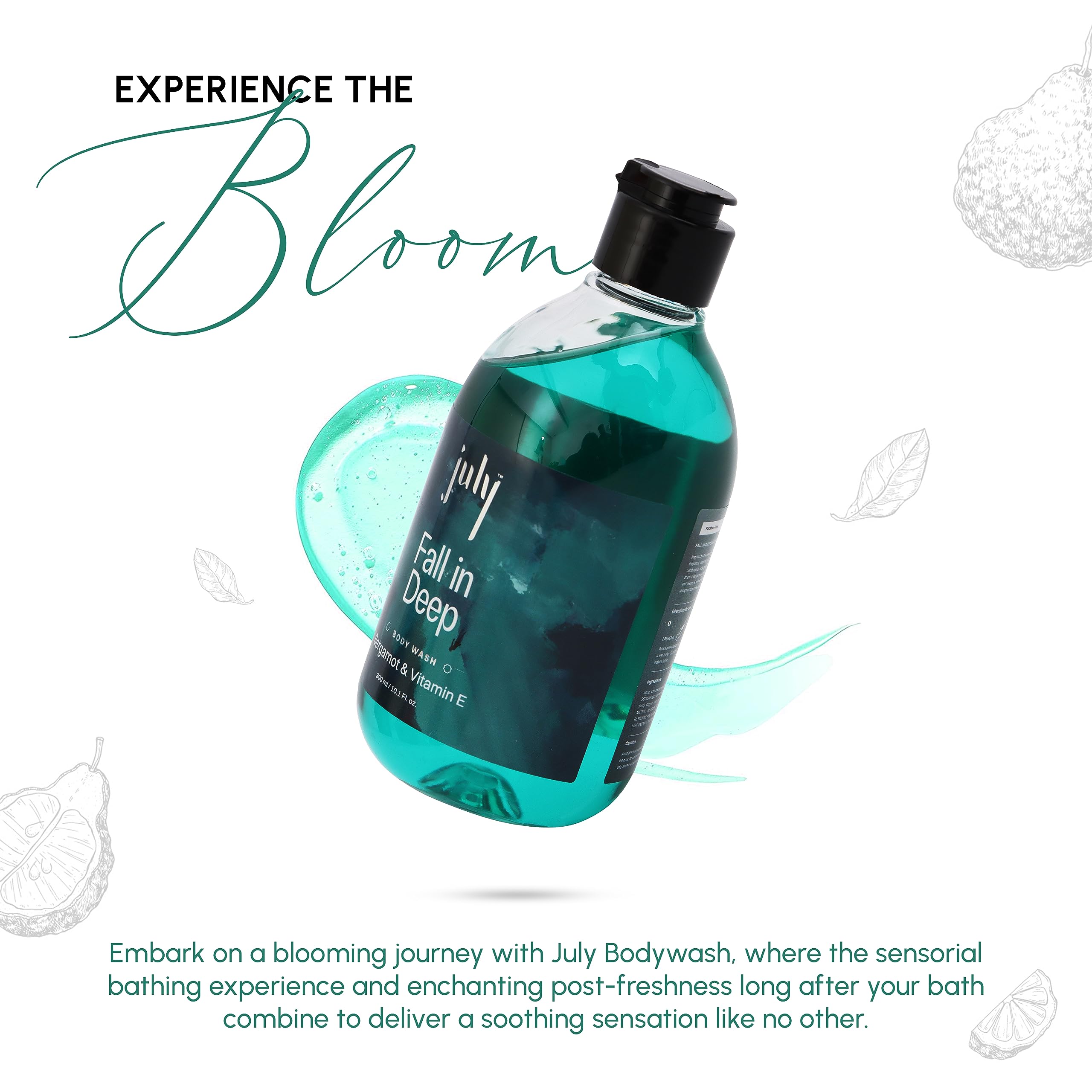 July Fall in Deep Body Wash | 300 ml | Bergamot | Vitamin E with Moisturiser | Long Lasting Fragrance | Anti - Aging Exfoliating Shower Gel | Nourishing Body Wash for Women & Men