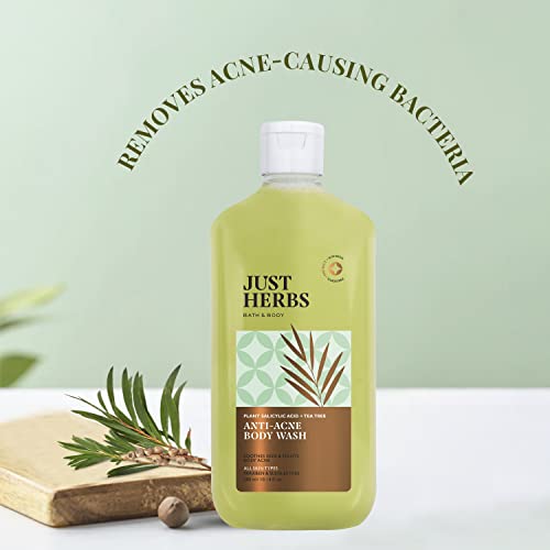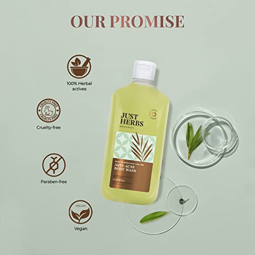 "Looking for an effective body wash to fight acne and provide soothing healthier-looking skin? Just Herbs Tea Tree Anti-Acne Body Wash with Plant Salicylic Acid is what you need. Infused with powerful tea tree oil this body wash effectively reduces sebum secretion fights acne and leaves your skin looking more clear and radiant. Plant-based salicylic acid(derived from Wintergreen Oil) helps reduce inflammation and redness and soothes the skin. Our Tea Tree Acne Body Wash with Plant Salicylic Acid promotes an acne-free youthful and radiant skin. With the infusion of 100% herbal actives this shower gel will make a healthy choice to add to your body care needs. "