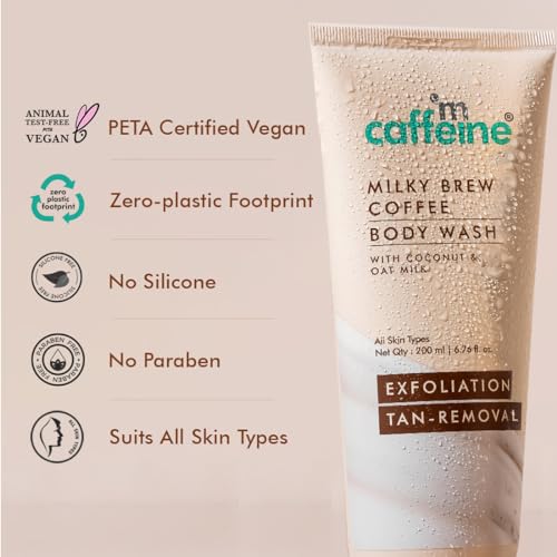 mCaffeine Milky Brew Coffee Body Wash Tube | Shower Gel for Fighting Dullness and Dryness | For Men and Women | Creamy Texture & Fresh Coffee Aroma | 200ml