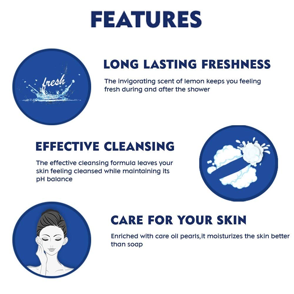NIVEA Shower Gel Lemon & Oil 250mlLet this fresh shower gel with care oil pearls envelop your skin with a silky soft foam while its revitalizing scent of lemon stimulates your senses. The caring formula pampers your skin leaving it feeling moisturized. Turn an everyday shower into a moment full of freshness & care.NIVEA Shower Gel Powerfruit Fresh 250mlBath Care Shower Powerfruit Relax shower gel from Nivea is a relaxing shower gel for men and women with the fragrance of acai berries and the goodness of blueberry antioxidants. Powerfruit Relax shower gel will give you a luxurious comforting bath experience and leave your skin soft clean and well-cared for. Only a small amount of the transparent scented gel is needed to provide a rich foamy lather that can be worked up using a loofah. The shower gel has been formulated to make the skin silky and soft. It has a unique Hydra IQ 24h+ moisture technology that keeps skin hydrated and moist for a whole day. To use the gel take a small dollop of it on your loofah which provides more lather or your hand and rub it all over your body before rinsing it off. The gel is suitable for all skin types. It can be used by men and women. It comes in a 250 ml bottle. It contains antioxidants from blueberries. It has the fragrance of acai berries.