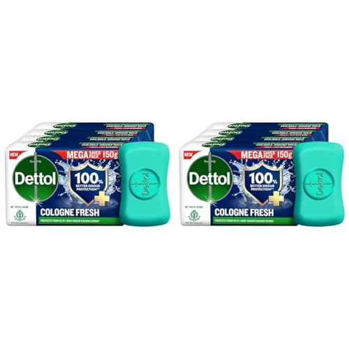 Dettol Cologne Fresh Bathing Soap Bar with 100% better odour protection- 150g Pack of 8, (600gm)