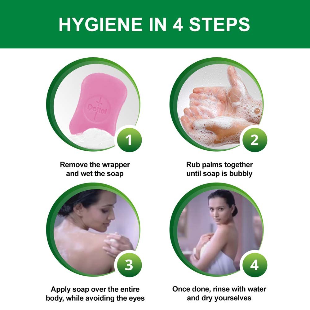 Dettol Soaps contain nourishing moisturizers that also provide Dettol's trusted germ protection from a wide range of unseen germs. Dettol bar soap efficiently cleanses and protects your skin helping you stay healthy every day. Personal hygiene plays a critical role in preventing the spread of illness and infection. Poor personal hygiene can cause infection skin complaints unpleasant smells and skin infections. Skin is our first line of defence from the outside world and by keeping skin clean and moisturised the barrier function will stay intact and overall health and appearance of skin will be improved. Reassuringly Dettol bathing bar soaps protect from a wide range of illness causing germs and bacteria to help you stay healthy. Protect your family from diseases like Cold and Flu by adding a layer of Dettol Protection. Personal Hygiene Healthy Habits with Dettol careTo minimize your risk of infection and also enhance your overall health follow these basic personal hygiene habits. Most importantly sleep tight. Get rest of about 8 to 10 hours each night so that you are refreshed and are ready to take on the day every morning. Bathe regularly that is wash your body and your hair often after intervals that suit you. Using Dettol Bathing Bar Soap on the skin can help minimize dryness and help keep germs away for a healthier you. Unclean skin can cause not only over-the -skin problems but also internal problems leading to illness and diseases. Trim your nails and keep your hands clean at all times. At Dettol we believe that using a liquid handwash over a soap bar can help keep your hands and nails clean and healthy. Hands are the immediate contact points in most cases and therefore require frequent and extra care. Clean your hands before preparing or eating food after coughing or sneezing after going to the bathroom and after handling garbage. This helps prevent the spread of bacteria and viruses keeping you and your family healthy. Even when you are out of home and do not have water and soap available carry an alcohol-based sanitizing gel. Brush and floss ideally after every meal. At the very least brush your teeth twice a day and floss daily which can minimize the accumulation of bacteria in your mouth.