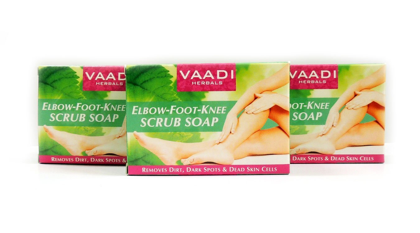 Elbow Foot Knee Scrub Soap - Handmade Herbal Soap - ALL Natural - Best Natural Skin Moisturizer - Each 2.65 Ounces - Pack of 3 (8 Oz) - Vaadi Herbals