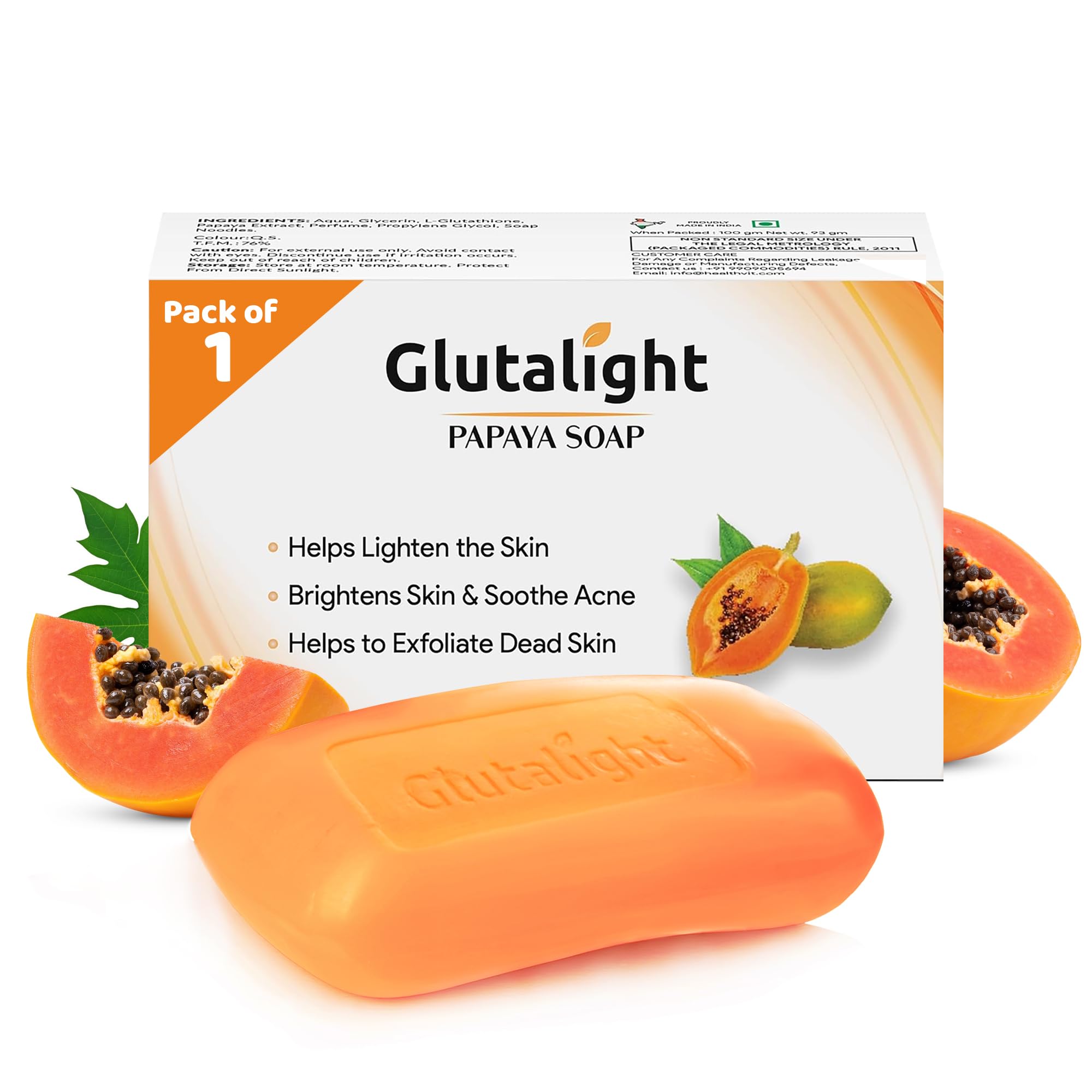 Introducing Glutalight Kojic Acid & Papaya Soap an exceptional choice for enhancing your daily skincare ritual. Each pack includes one 100g bar of soap thoughtfully formulated with the finest ingredients to offer a unique and indulgent experience. This soap blends the power of Kojic Acid with the gentle exfoliation of Papaya Extract and the nourishing touch of Olive Oil creating a harmonious blend that caters to your skins needs. Kojic Acid is renowned for its ability to help achieve a more even skin tone while Papaya Extract delivers natural exfoliating benefits encouraging a refreshed and revitalized feel. Olive Oil enriches the formula with its soothing and moisturizing properties leaving your skin feeling pampered and cared for. Glutalight Kojic Acid & Papaya Soap provides a delicate lather and a subtle invigorating fragrance making your cleansing routine a moment of luxury and relaxation. Suitable for all skin types this soap is designed to be gentle and non-irritating making it a versatile choice for daily use by everyone in the family. Whether youre starting your day or winding down in the evening Glutalight Kojic Acid & Papaya Soap adds a touch of elegance to your routine. Embrace the benefits of this exceptional soap and enjoy a refreshing and rejuvenating experience with every wash. Elevate your skincare regimen with Glutalight and treat your skin to the care it truly deserves.