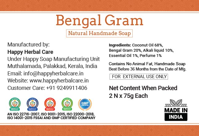 Happy Herbal Care Bengal Gram Soap 75 gm - (Kadala Maavu) Soap (Pack of 2)