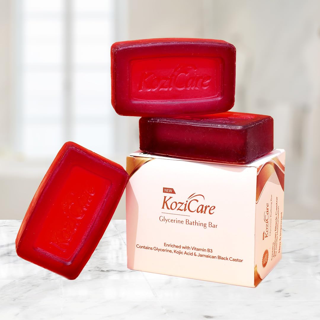 Experience skin transformation with Kozicare Skin Lightening Soap Combo. Enriched with Kojic Acid Papaya Sandalwood Saffron and vital nutrients like Vitamin C Arbutin Glutathione and Vitamin E this soap rejuvenates dull skin fights acne and controls excess oil. Achieve a natural glow while enjoying built-in sunscreen protection. Unveil a clearer even skin tone with the power of nature and science combined. Elevate your skincare routine and embrace radiant luminous skin with every use.