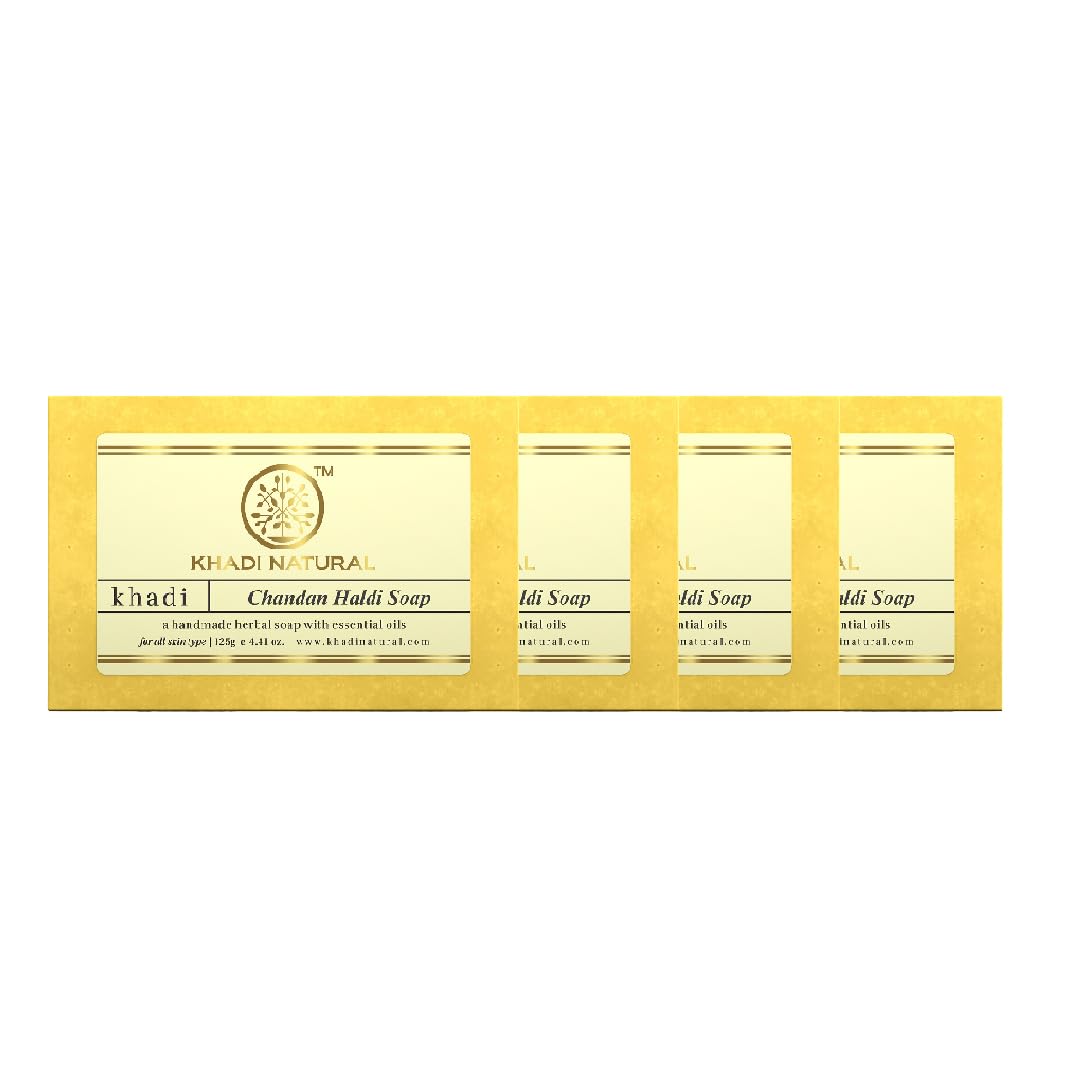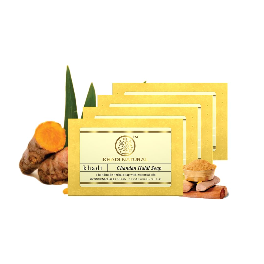 KHADI NATURAL Herbal Chandan Haldi Soap 125 g| Herbal Bathing Soap for Healthy Skin | Natural Soap with Essential Oils | Soap with Antiseptic properties| Suitable for All Skin Types | Pack of 4