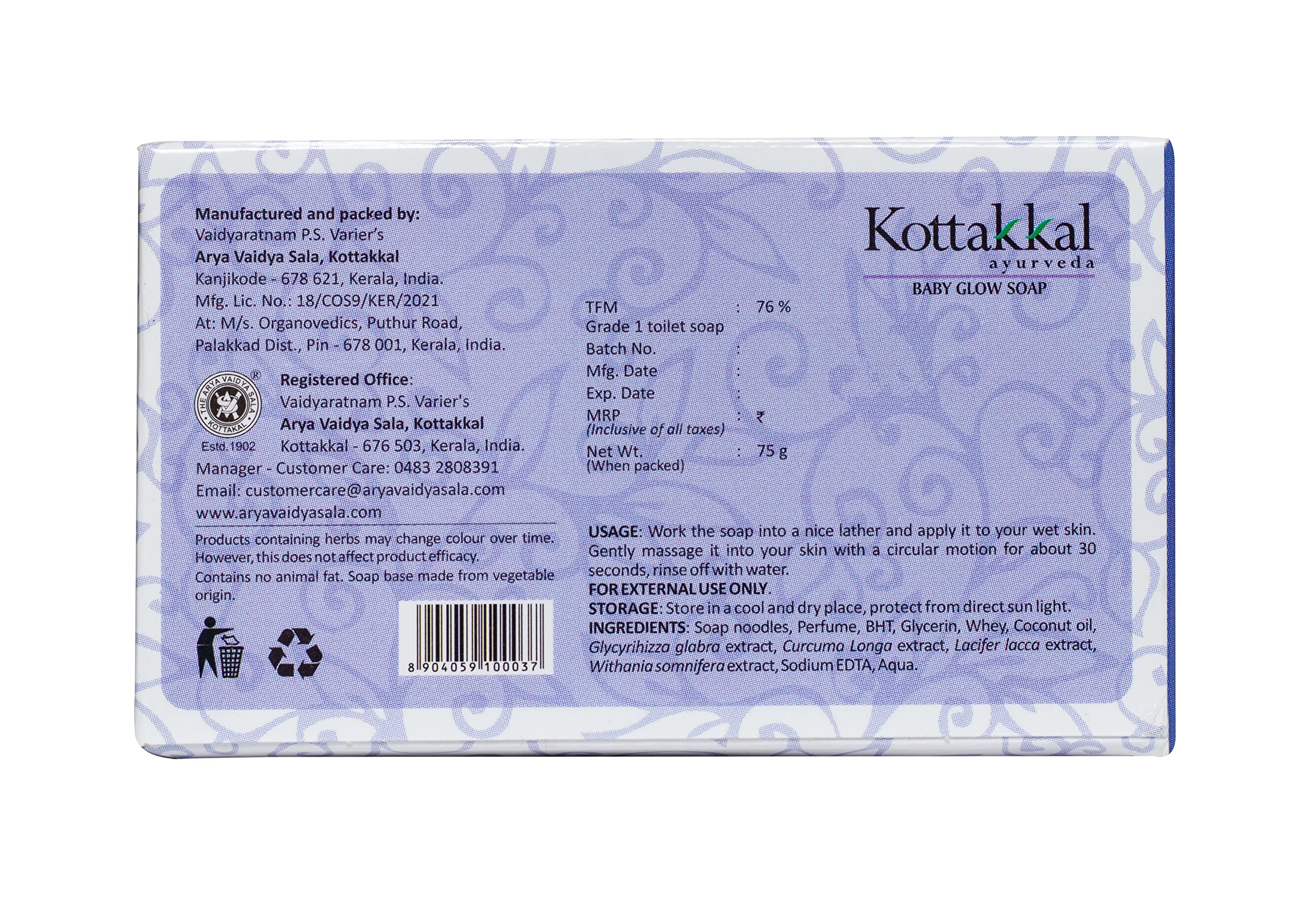 Kottakkal ayurveda Baby Glow Soap - 75 gm With Natural Ingredients - Pack of 1