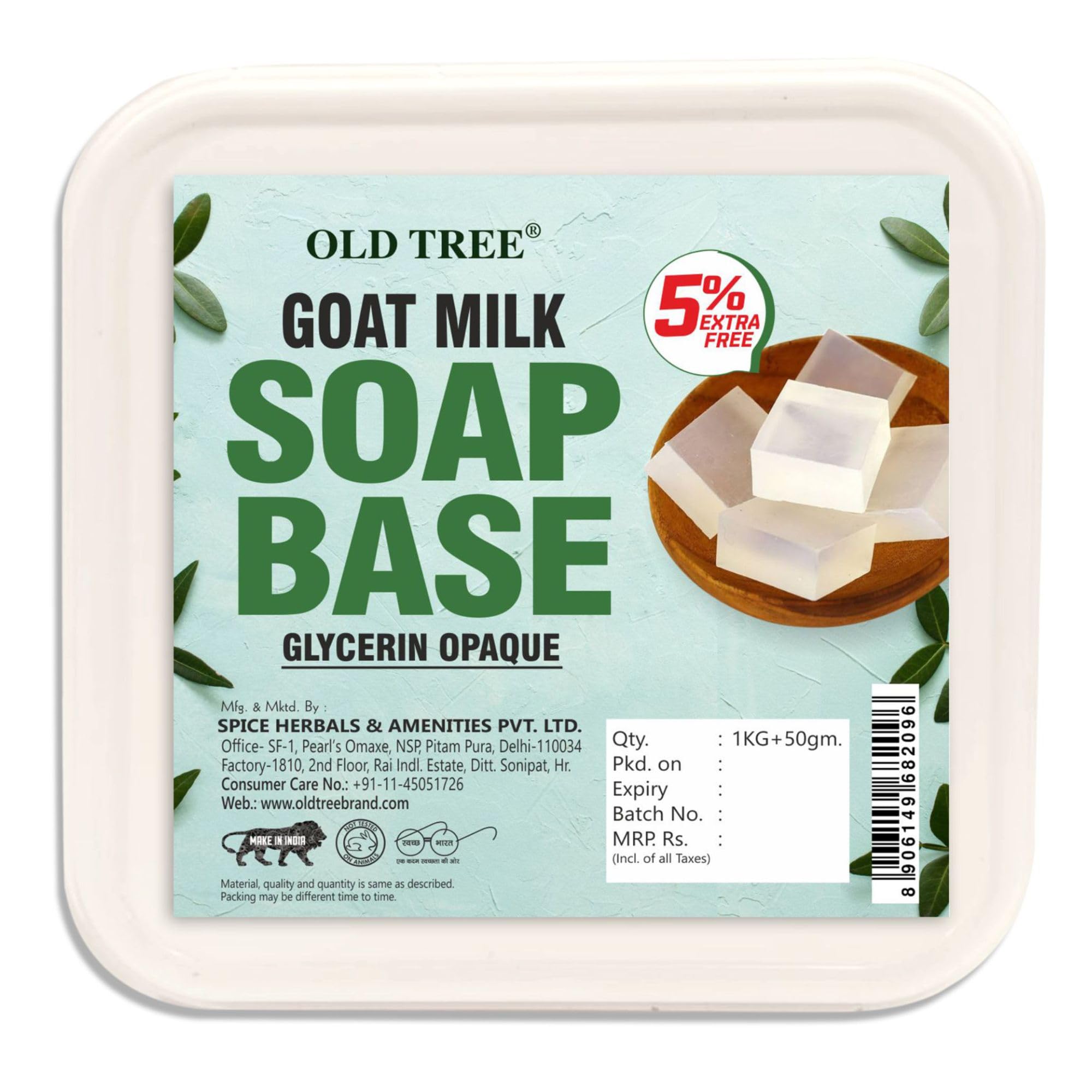 Old Tree Glycerine Opaque Goat Milk Soap Base (1kg + 50g Extra) for Soap Making | Paraben Free & Non Fragrant | Melts & Pour Handmade Soap | DIY Soap Making at Home
