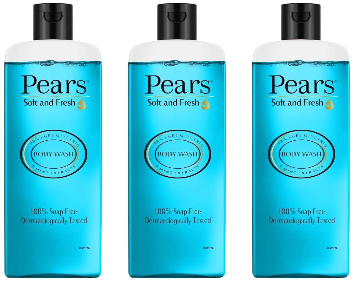 HomeBeautyBodyBath & ShowerSoapsPears Soft and Fresh Body Wash 250 ml 98% Pure Glycerin Liquid Shower Gel crafted with Mint Extracts for Refreshed Skin No Paraben & 100% Soap Free (Pack of 3)
