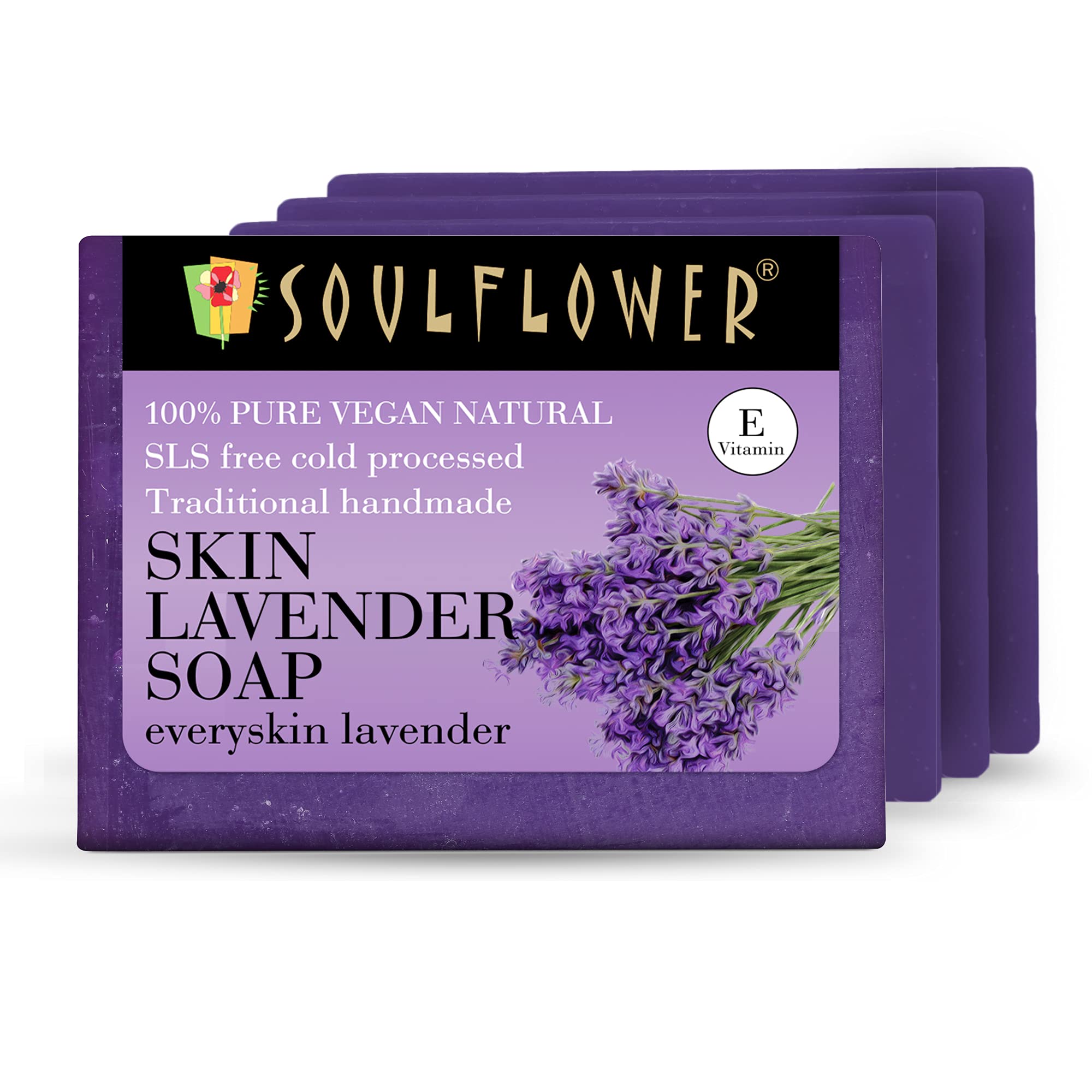 HomeBeautyBodyBath & ShowerSoapsSoulflower Lavender Soap for Bath Handmade Luxury Bathing Bar |Men & Women for All Skin Types | Mood Uplifter, Soothing & Refreshing, Everyday Moisturization| 100% Organic & Pack of 4 150g Each