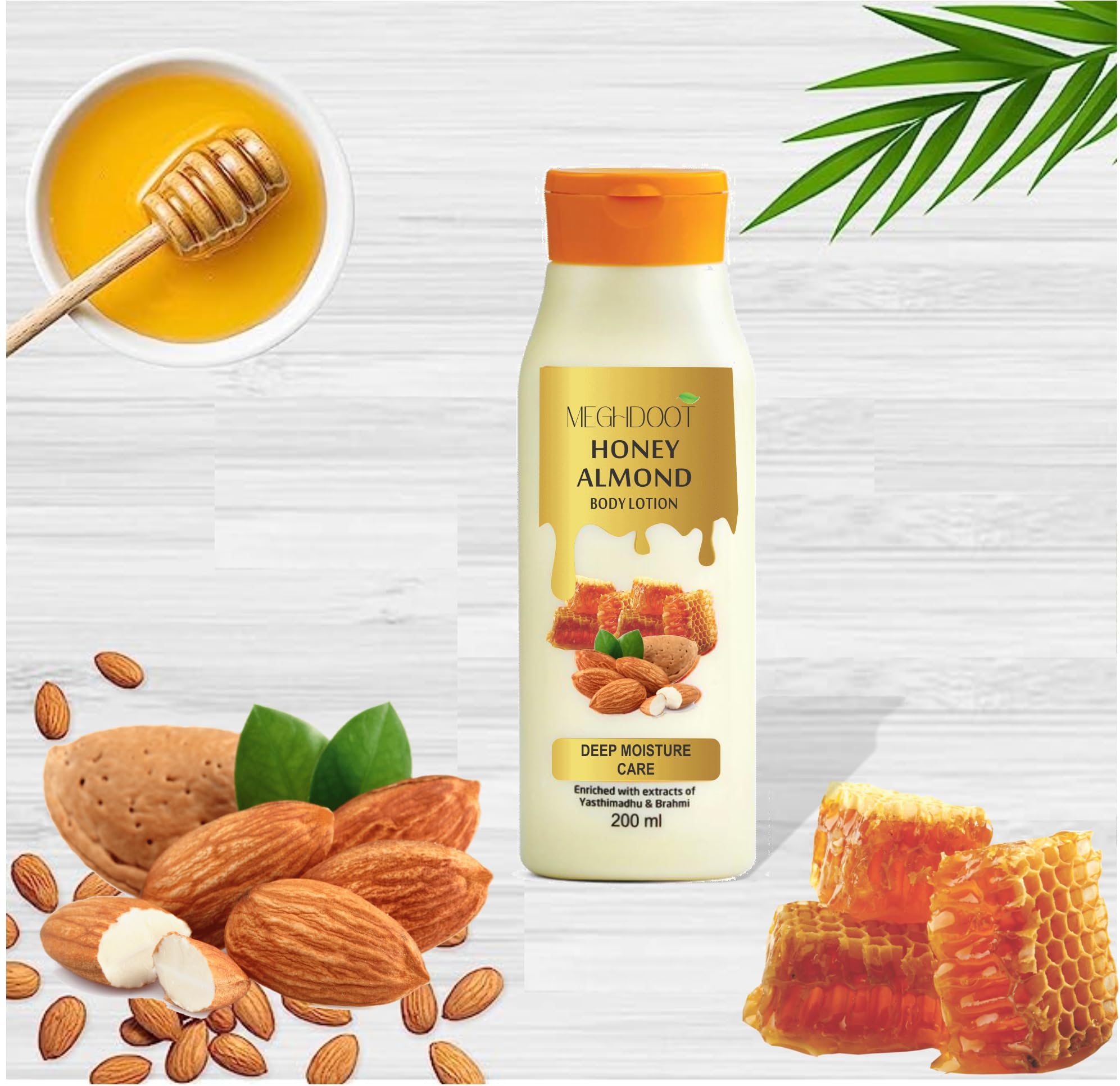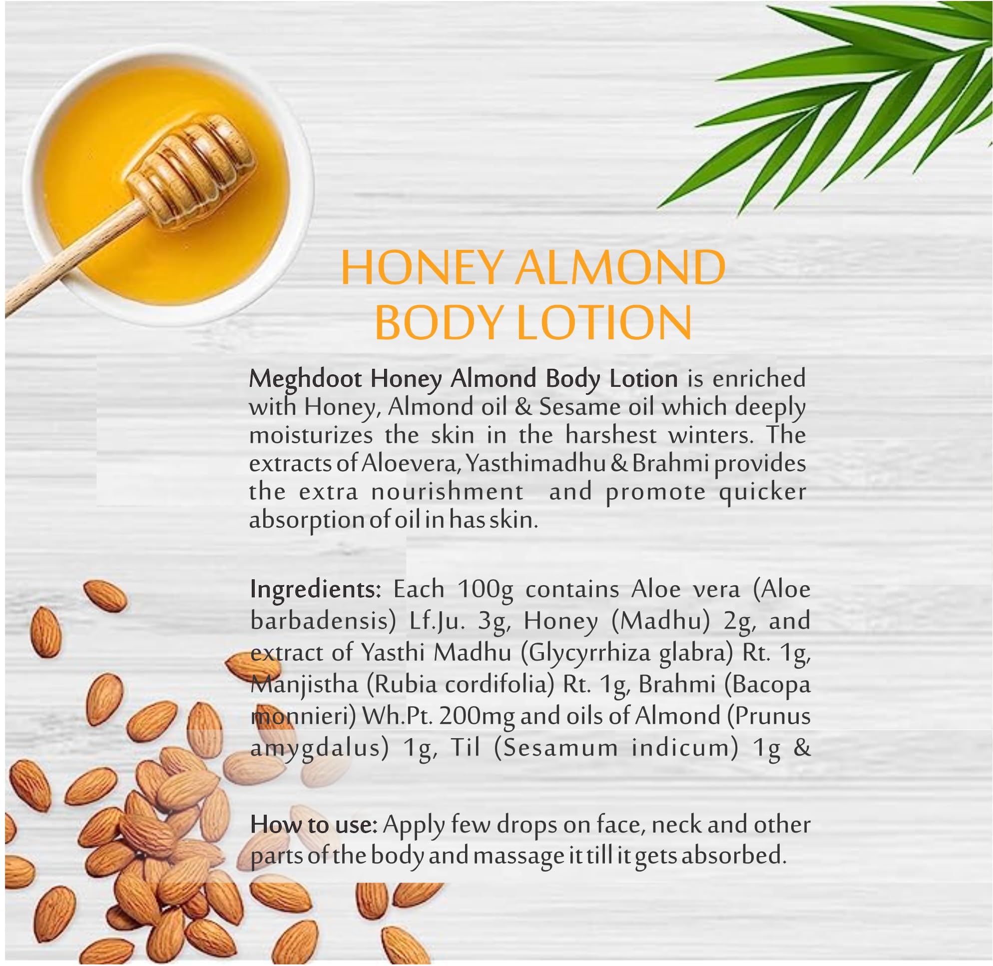 Meghdoot Honey Almond Body Lotion Deep Moisture Care Ayurvedic Hydrating Lotion for Soft and Glowing Skin 200ml Each (Pack of 2)