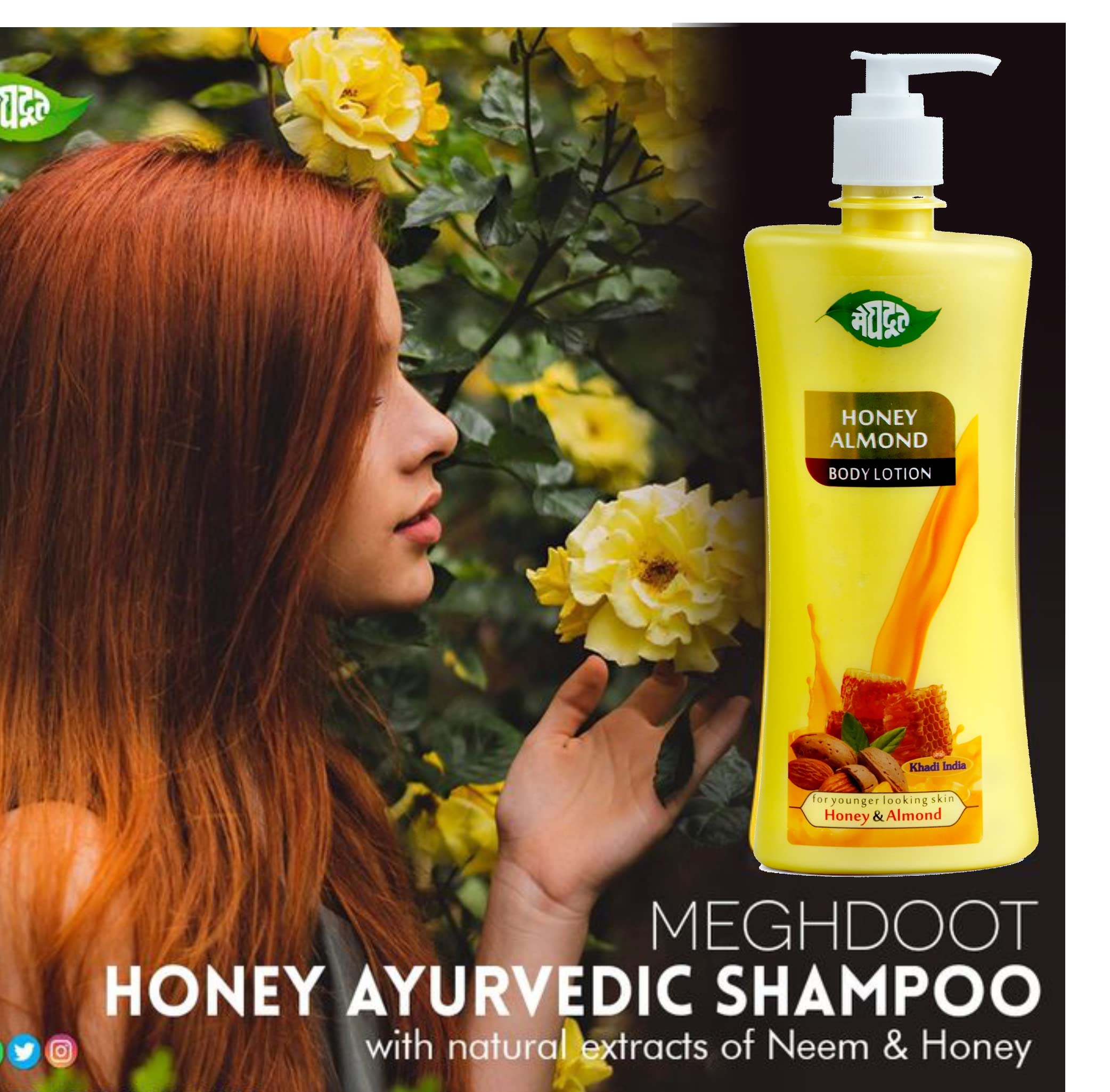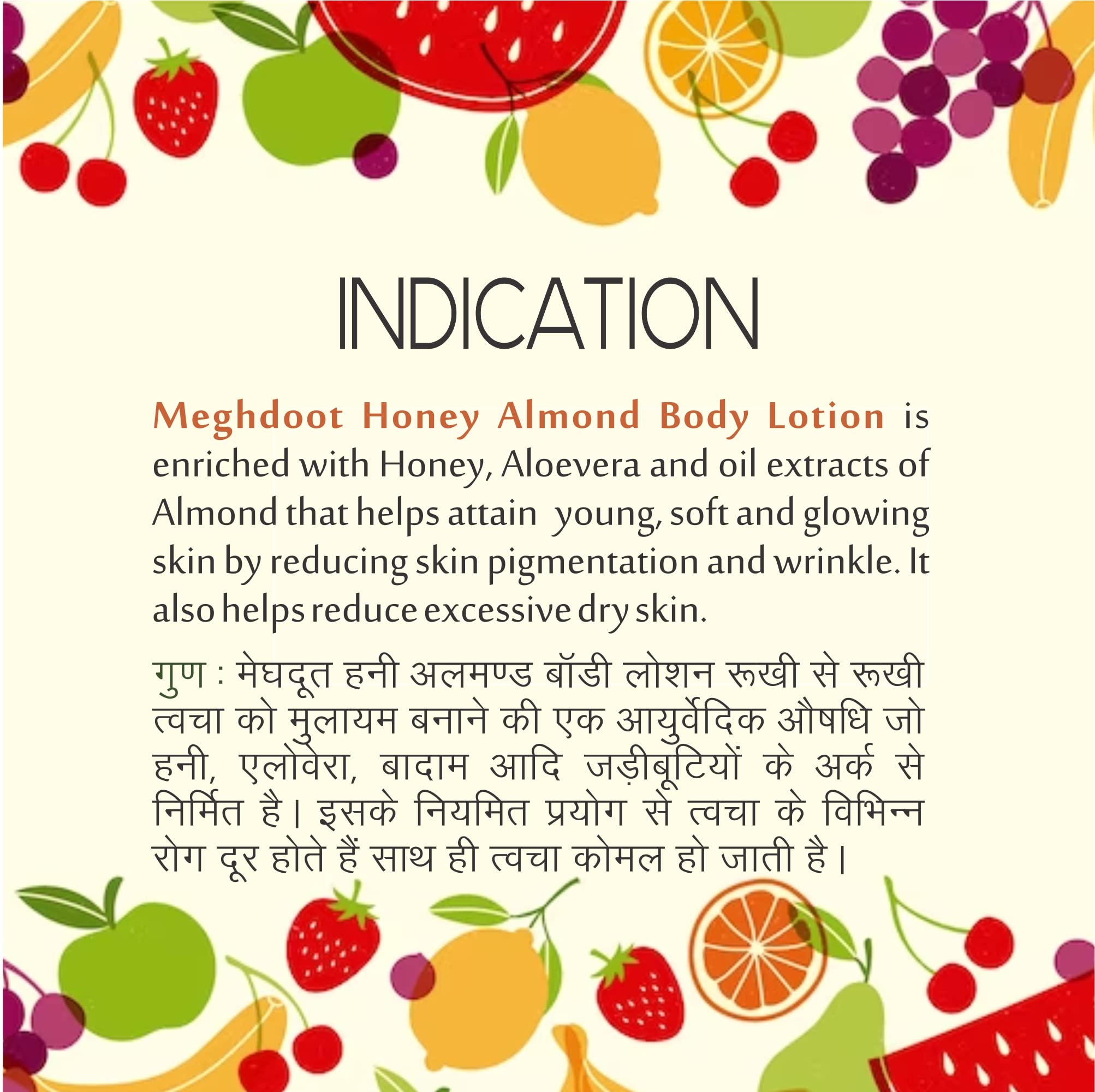 Meghdoot Natural Honey Almond Intense Hydrating Body Lotion Enriched With Extracts of Brahmi and Aloe vera for Pigmentation and Dry Skin Soft and Glowing Skin 500ml (Pack of 1)