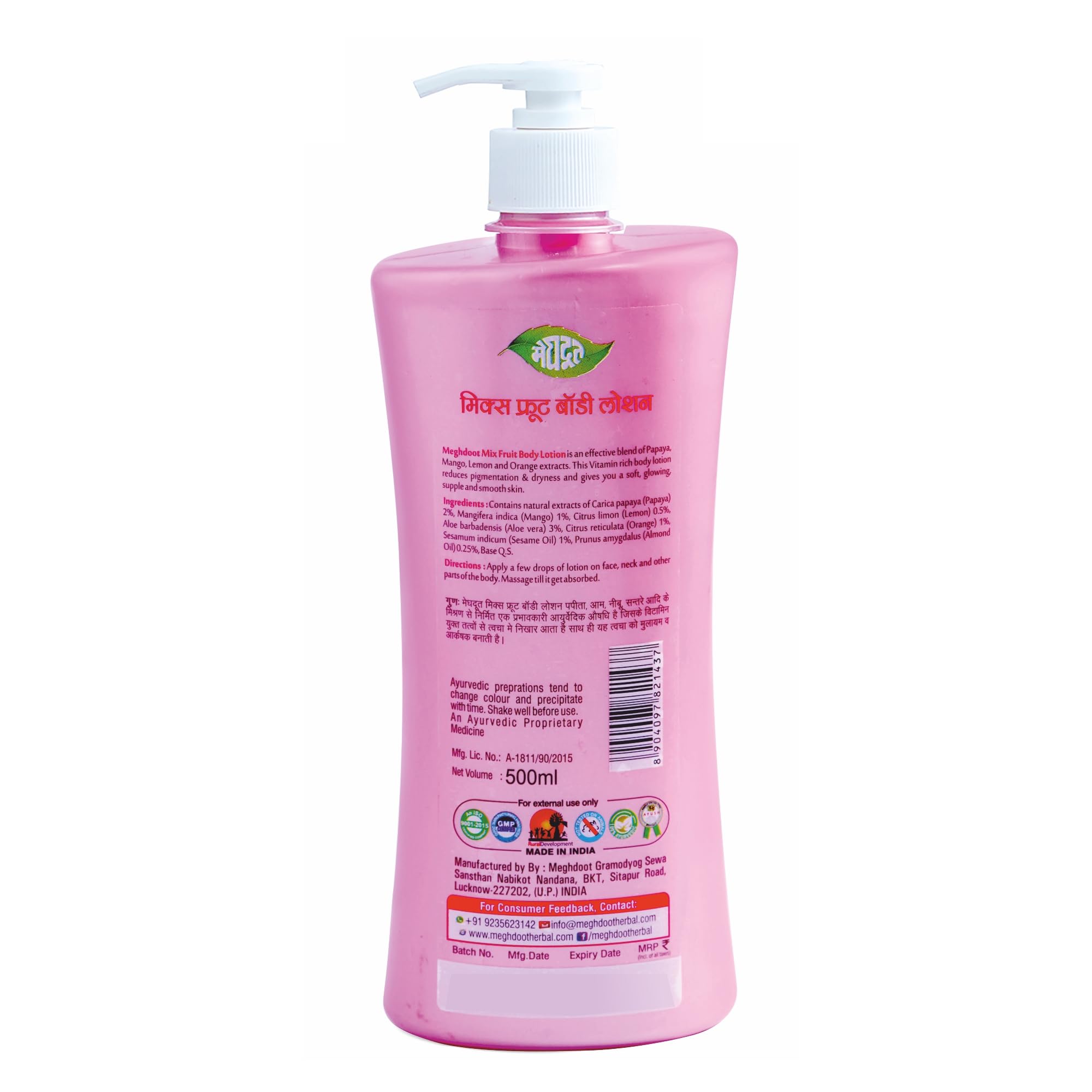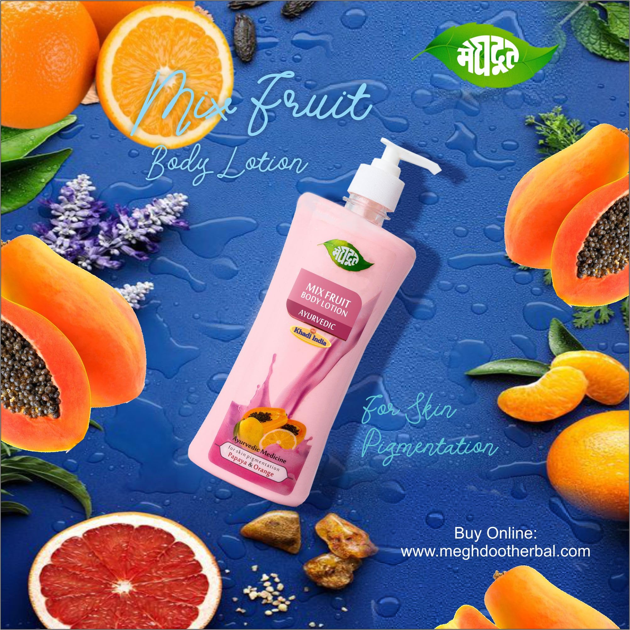 Meghdoot Natural Mix Fruit Intense Hydrating Body Lotion Enriched With Extracts of Papaya & Orange for Pigmentation and Dry Skin Soft and Glowing Skin 500ml (Pack of 2)