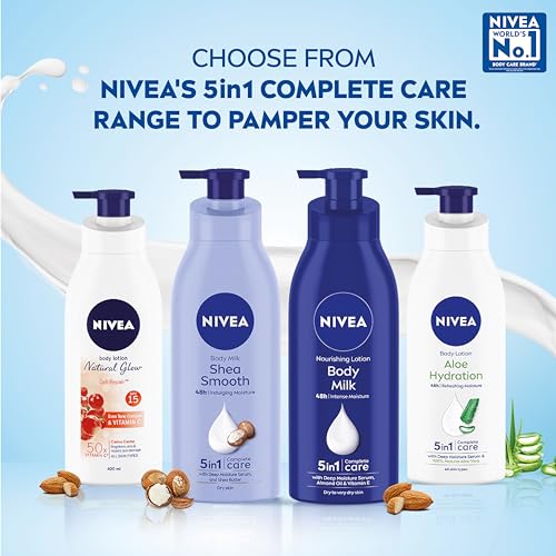 NIVEA Nourishing Body Lotion is a rich luxurious lotion that is ideal for extra dry and sensitive skin types that have lost their natural moisture. Enriched with skin softening essential almond oil and infused with deep moisture serum NIVEA Nourishing Body Lotion intensively nourishes your skin for 48hours to noticeably reduce the dryness of your skin just after one application leaving it soft smooth and well moisturized. At NIVEA weve got a vast selection of soaps shower gels bath additives deodorants creams lotions milks and a lot more. If youre looking for products to help improve the healthy look or glow of your skin weve got you covered! Take a look now and discover the ideal NIVEA product for your needs and preferences. We have products for both men and women including shaving items and deodorants for all of your personal hygiene requirements. NIVEA a hundred years of skincare for life!