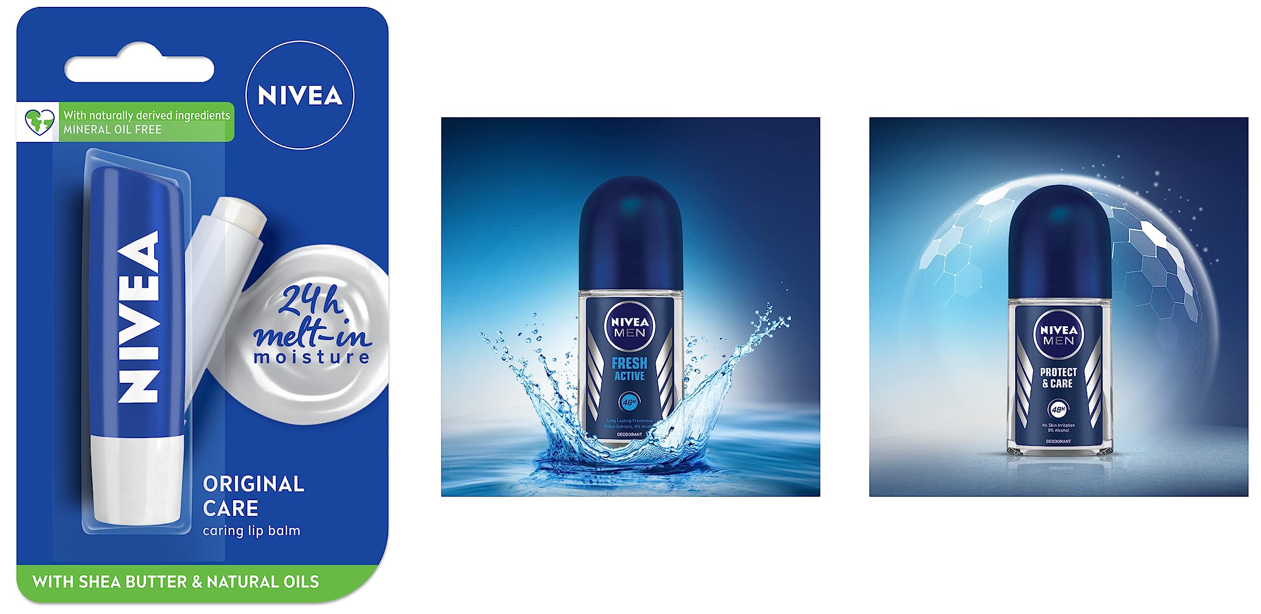 Nivea Protect & Care Deodorant Roll On for Men 50 millilitersNivea protect & care is the only roll on with precious ingredients and fragrance of Nivea creme. It protects against body odour & cares for your delicate underarm skin. Skin compatability dermatologically proven. Long lasting odour protection & gentle Nivea care with precious Nivea creme ingredients & its unique scent. Non-irritating skin tolerance dermatologically proven.Fresh Active Roll On For Men Anti-perspirant 50 MlNivea men fresh active roll-on keeps you feeling fresh all-day long with effective anti-perspirant protection.it is enriched with ocean extracts and a fresh masculine scent to provide long-lasting freshness. It has the optimal combination of reliable deodorant protection and Nivea men care complex.skin tolerance dermatologically proven.NIVEA Lip Balm Original Care Silver 4.8gNivea original lip care nourishes lips that always look and feel their best. Its pampering formula provides rich care and essential protection from drying out for sensationally soft lips.care effect-the skin on your lips is much thinner than rest of the body skin it chaps and peels so easily and hence ideally should be kept moisturized with a lip care product. A lip balm acts as a lip moisturizer and gives your lips the perfect smooth texture.experience the rich care of Nivea original care with 12 hour care effect.your lips care a lot for you now itâs your turn to care for them.how it works-the pampering formula with shea butter and panthenol provides a 12 hour care effect leaving your lips sensationally soft and effectively protected from drying out.