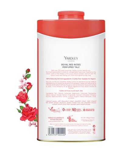 Yardley London Perfumed Talc, Red Roses, 8.8 oz, 250 g