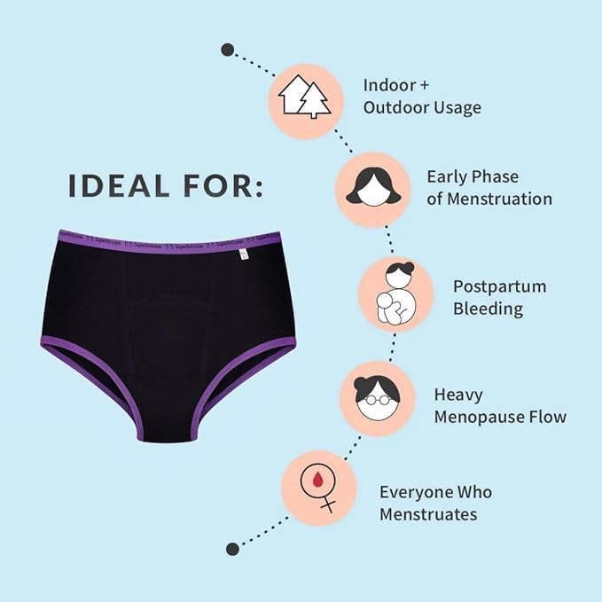HomeBeautyBodyFeminine Hygienesuperbottoms MaxAbsorb® Period Underwear | Period Panty for Women | 8Hr Absorption | No Leaks, No Stains | High Waist, Full Coverage | Bamboo Fabric + Cotton(Black & Lilac,Size:XXS)