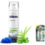 GILLETTE SENSITIVE SHAVING GEL SOOTHING WITH ALOE VERA| 195gWith 3x action formula Gillette Sensitive Skin Soothing shaving gel hydrates protects and soothes your skin. Formulated with Aloe Series Sensitive shaving gel helps protect your sensitive skin against the 5 signs of shaving irritation: nicks and cuts tightness redness burning and stinging. For an incredibly comfortable shave use Gillette Sensitive Skin Soothing shave gel with Gillette Mach3 razor.Gillette Vector Plus Manual Shaving Razor 1 PcGillette Vector Razor with adjust automatically pivoting head fast twin blades shave you twice with each stroke eliminating irritating repeat strokes for a faster shave than with a double edge blade.