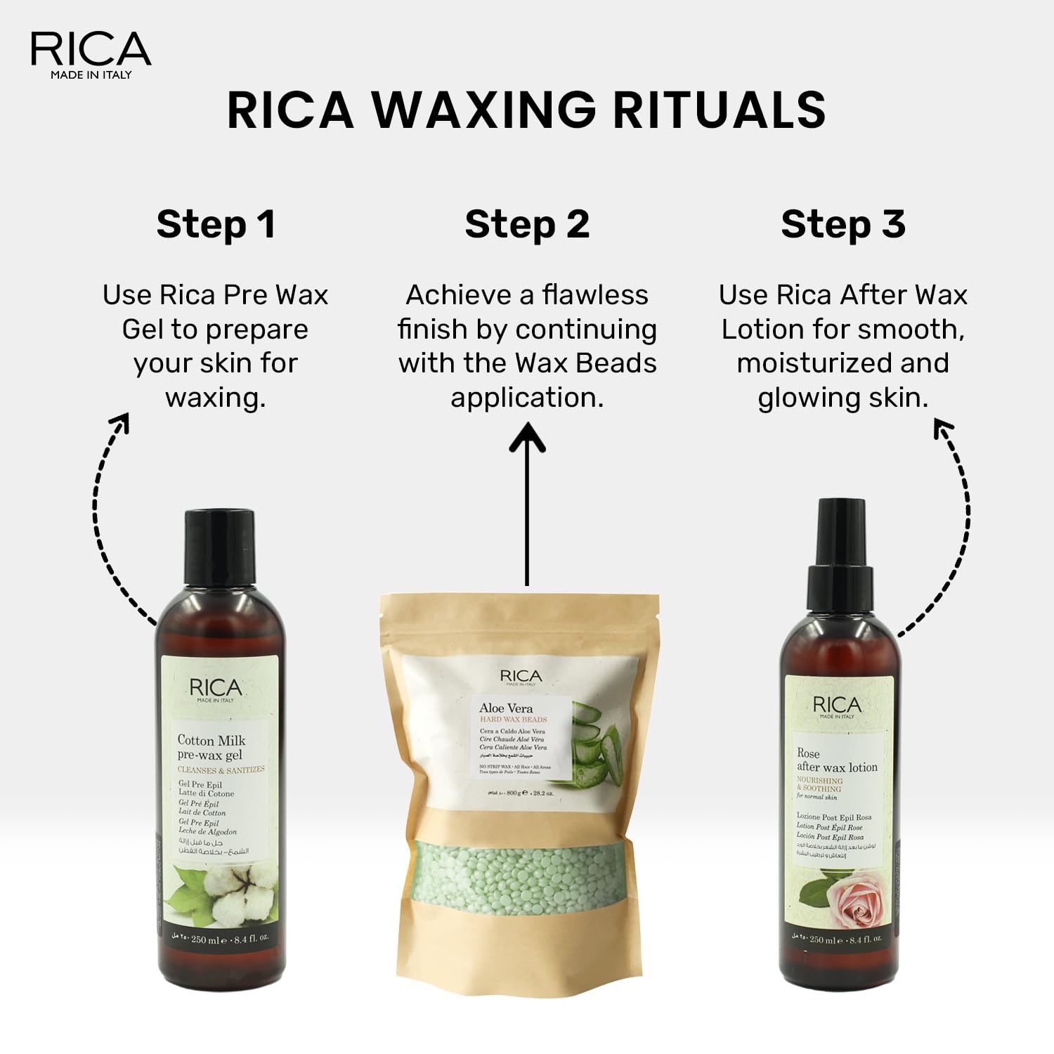Rica Aloe Vera Beads Stripless & Painless Hair Removal Hard Wax For Men & Women| Quick & Easy Tan Removal Waxing For Face Armpit & Bikini Areas| 800 gm Pack of 1