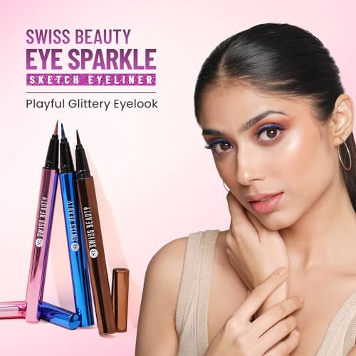 Make your eyes pop with the Swiss Beauty Eye Sparkle Sketch Eyeliner a must-have for those who love to shine. With a sleek fine-tip it effortlessly glides along your lash line enabling you to create bold and fine lines with ease. Its rich quick-drying formula ensures smudge-proof waterproof wear perfect for all-day confidence and enchanting evenings. What sets this eyeliner apart is its impressive longevity providing extended wear that stays vibrant from dawn to dusk without needing frequent touch-ups. Available in 6 shades this eyeliner is your perfect go-to for your different moods. Be it a casual day out or a glamorous evening affair the Eye Sparkle Sketch Eyeliner stands ready to complement any look accentuating your eyes with a radiant sparkle.