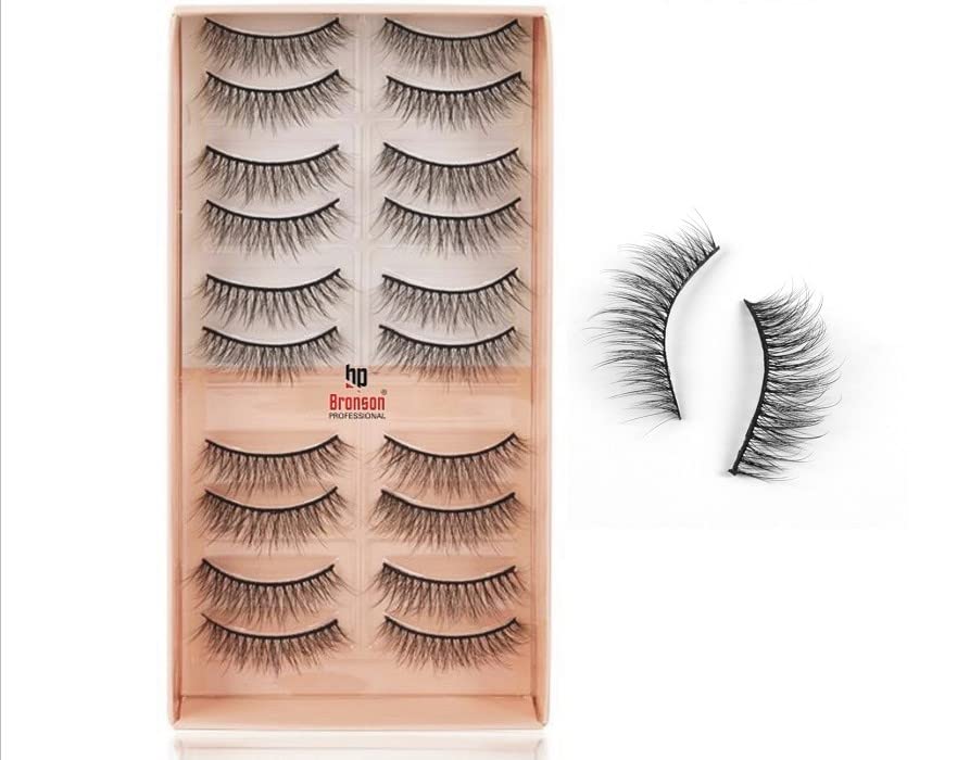 BRONSON PROFESSIONAL Eyelash set 3D false long and natural eye makeup 10 pairs No. L12