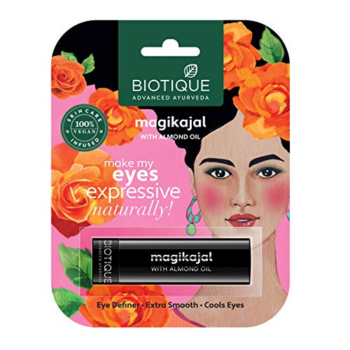 Biotique Natural Makeup MagikajalThis soothing Magikajal is made in the traditional Ayurvedic manner blended with pure sesame oil sweet almond oil and extracts of eclipta alba indian gooseberry and berberis. Biotique Magikajal consistent application defines your eyes like never before. USPs: Long-lasting Eyecare-infused Cools your eyes Consistent application Extra smooth Removal Tip: Use Bio Almond Makeup Cleanser
