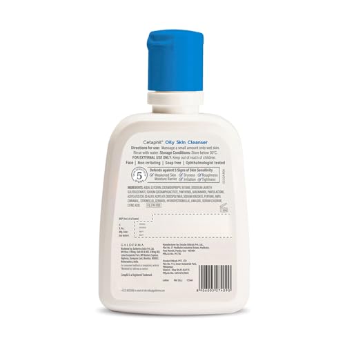 Cetaphil oily skin cleanser reduces excess facial oiliness with Deep Pore Cleansing action without damaging skin barrier. It is Non-irritating Gentle Foaming rinses easily without leaving any residue and Moisturises the skin Ingredients: Purified Water PEG-200 Hydrogenated Glyceryl Palmate & PEG-7 Glyceryl Cocoate Sodium Lauroyl Sarcosinate Acrylates/Steareth - 20 Methacrylate Copolymer Gylcerol Sodium Laureth Sulfate Butylene Glycol Phenoxyethanol Dexpanthenol Methyl Parahydroxybenzoate PEG-60 Hydrogenated Castor Oil Fragrance Disodium EDTA