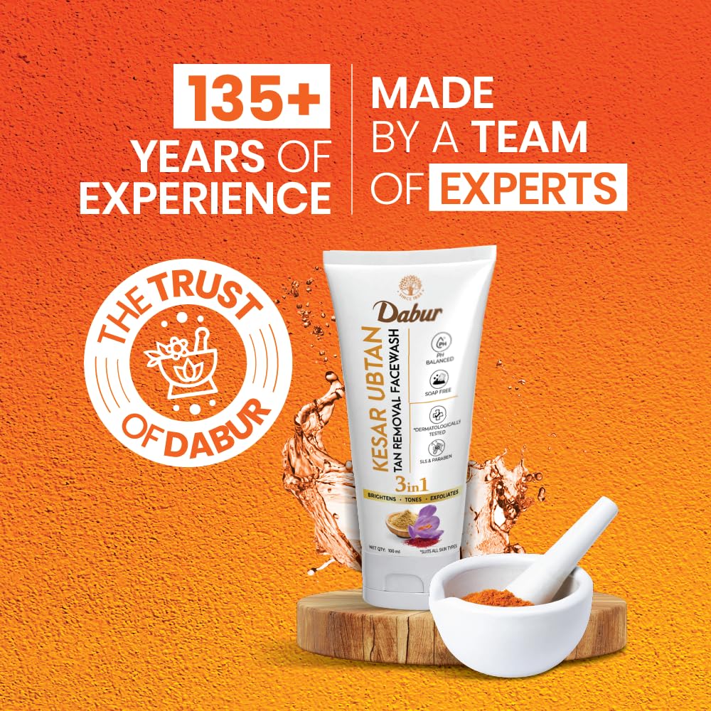 DABUR Kesar Ubtan Face Wash-100ml | Enriched with Natural Turmeric Niacinamide & Saffron to Brighten Tone and gently Exfoliate Skin | For Removing Tan Dark Spots Dirt & Impurities
