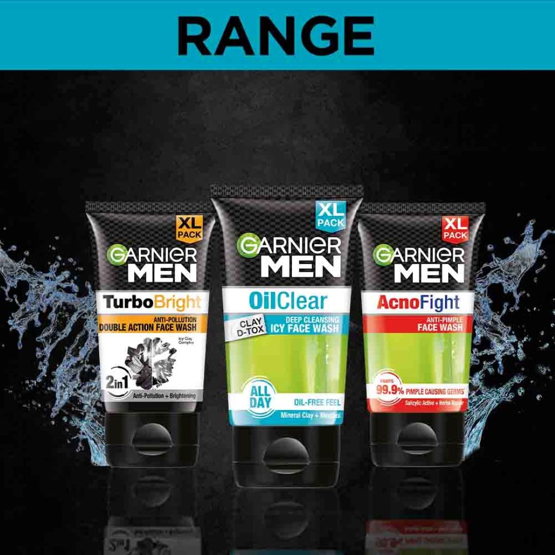 Garnier Men Oil Clear Deep Cleansing Face Wash Mineral Clay and Menthol Deep Cleansing Face Wash for Oil Free Feels Suitable for all Skin Types 150g x2 (Pack of 4)