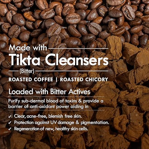 • IngredientsRoasted Chicory Roasted Coffee Loaded with bitter actives. provide a barrier of anti-oxidant power aiding clear acne-free blemish free skin.
