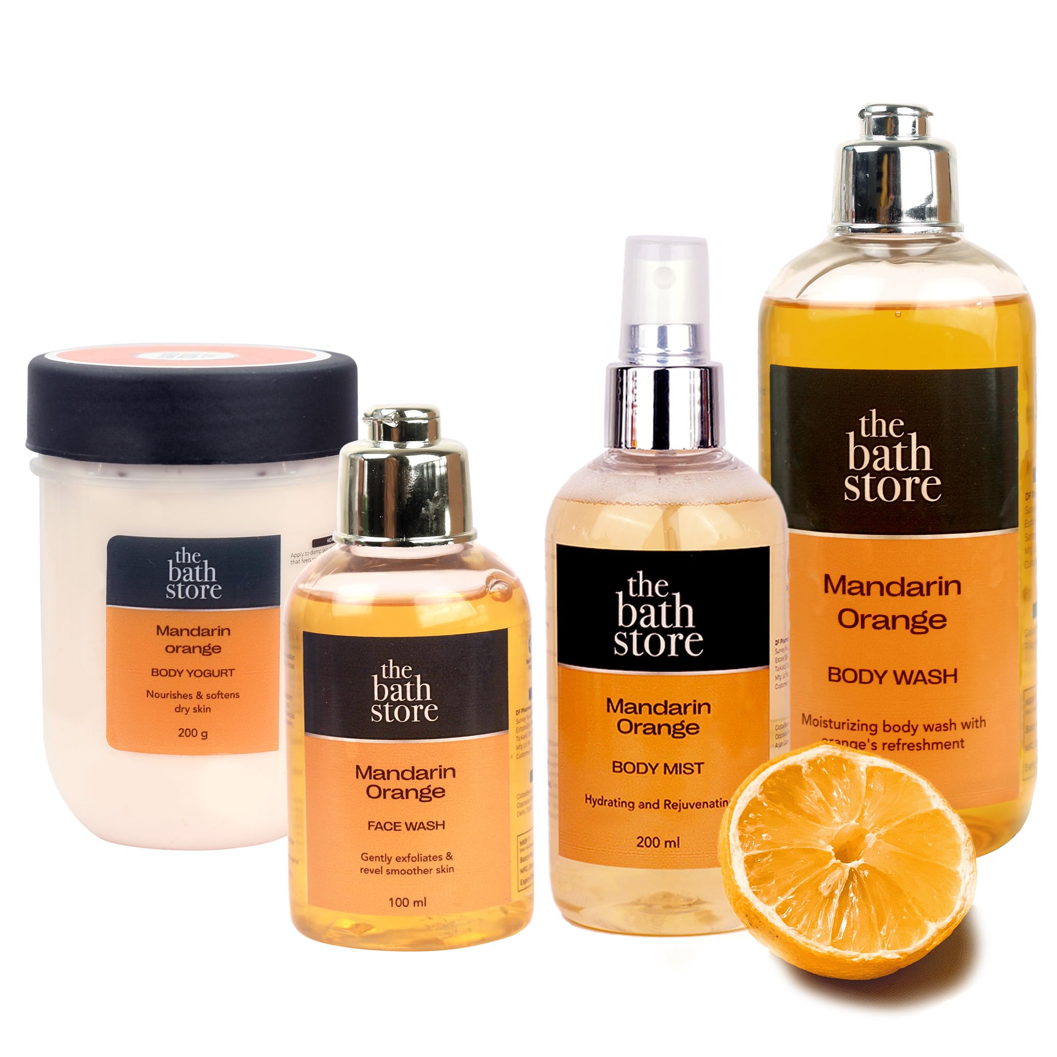 Mandarin Orange Face Wash: A refreshing face wash infused with Mandarin Orange scent designed to cleanse gently yet effectively. It revitalizes the skin while leaving a subtle scent perfect for daily use. Mandarin Orange Body Wash: Indulge in a luxurious shower experience with our Mandarin Orange body wash. It lathers richly cleansing the skin with a burst of decent fragrance. Formulated to hydrate and invigorate leaving your skin feeling smooth and refreshed. Mandarin Orange Body Mist: A light and refreshing body mist enriched with Mandarin Orange essence. Spritz onto skin for an instant burst of citrus freshness throughout the day. Ideal for a quick pick-me-up or to complement your skincare routine. Mandarin Orange Body Yogurt: Nourish your skin with this Mandarin Orange body Yogurt infused with moisturizing ingredients and the zesty aroma of Mandarin Oranges. It absorbs quickly leaving your skin soft hydrated and delicately scented.