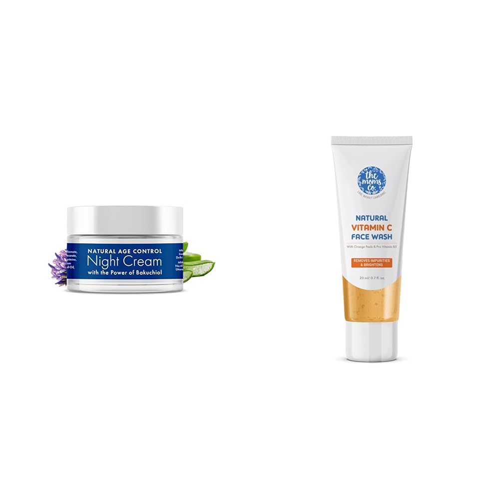 The Moms Co. Natural Age Control Night Cream for Women| Night Cream For Women Anti-Ageing- 10 gm Natural Vitamin C Face Wash for Women & Men I Natural Simple Face Wash | 20 ml