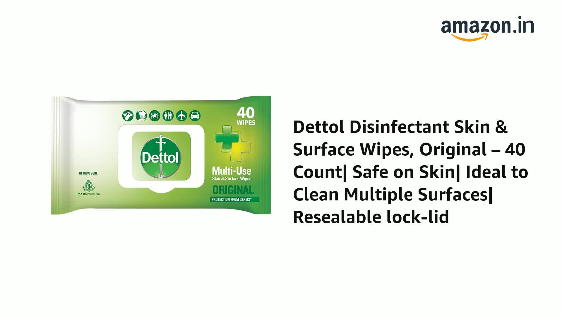 Dettol's Disinfecting Skin & Surface Wipes are Safe on Skin Ideal to Clean Multiple Surfaces Easy to carry with a resealable Moisture-lock lid. Dettol disinfecting wipes are practical for everyday use on furniture taps sinks door knobs kitchen bathroom surfaces floor cleaning childrenâs surfaces and places that are germ hotspots. It can be used on most hard non-porous surfaces including Finished Wood Sealed Marble Stainless Steel Laminated Floors Glass and Plastic.