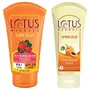 Lotus Herbals Safe Sun Block Cream SPF 20 100gThis cream effectively blocks the UVA and UVB rays of the sun and helps preserve the youthfulness of your skin. Good for protection from direct exposure to sun for shorter period.Lotus Herbals Apriscrub Fresh Apricot Scrub 100gTo get a refreshed soft and glowing skin Lotus Herbals Apriscrub Fresh Apricot Scrub is an perfect scrub for all skin types. This is a unisex scrub and refines the skin efficiently. It is enriched with natural ingredients such as Walnut Shells Cetyl Alcohol Elder Flower extracts and Glycerin. It helps to remove the dead cells without affecting your skin.This scrub is effective to provide brighten skin by removing the blackheads from the skin. It cleanses the clogged pores in the skin and restores the moisture. This scrub comes with special oil absorbing and skin softening properties.Background: Suitable for all skin types.Provides fresh skin in just a few minutes. Helps to refine the skin.Efficiently cleans the clogged pores. Helps to remove blackheads from the skin. Removes the dead skin cells. Helps to get glowing and refreshing skin. Formulated with Elder Flower extracts Walnut Shells Glycerin and Cetyl Alcohol. Helps to restore moisture of the skin. Comes with skin softening and oil absorbing properties. Ideal for daily use.
