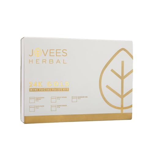 HomeBeautyFace CareFacial KitsJovees Herbal Mini 24 Carat Gold Facial Value Kit With 5 Easy Step Organic Facial Kit For Natural Golden Glow, Radiant & Luminous Skin All Skin Types 75g